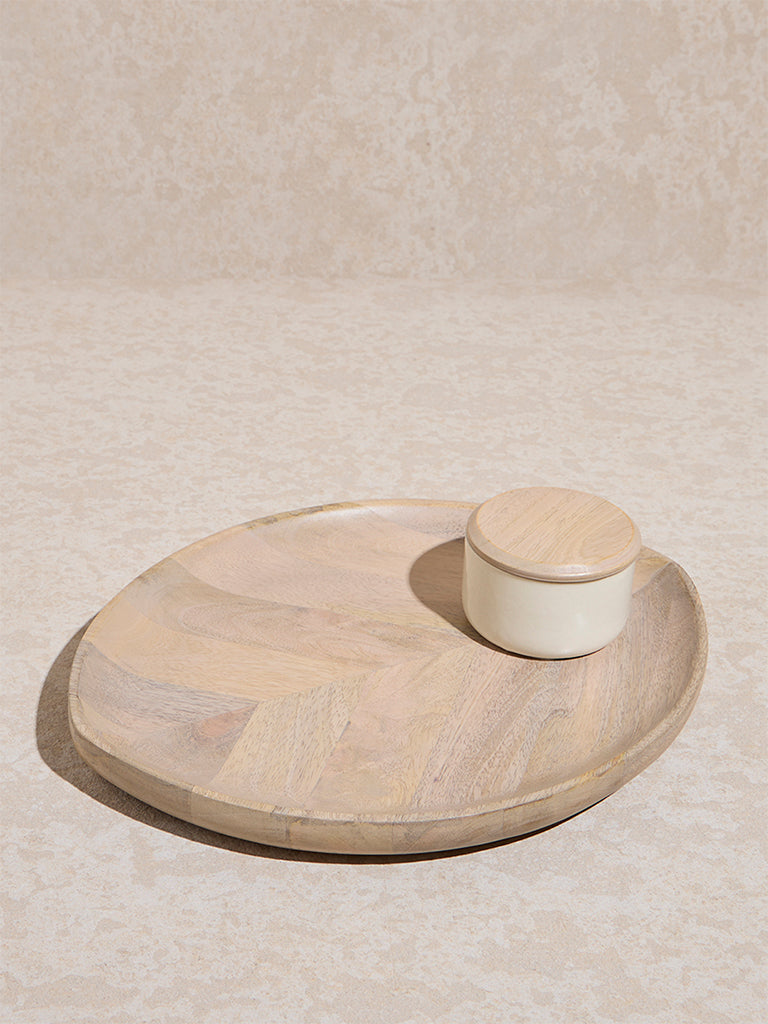 Westside Home Beige Wooden Leaf Design Chip and Dip