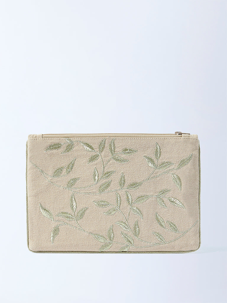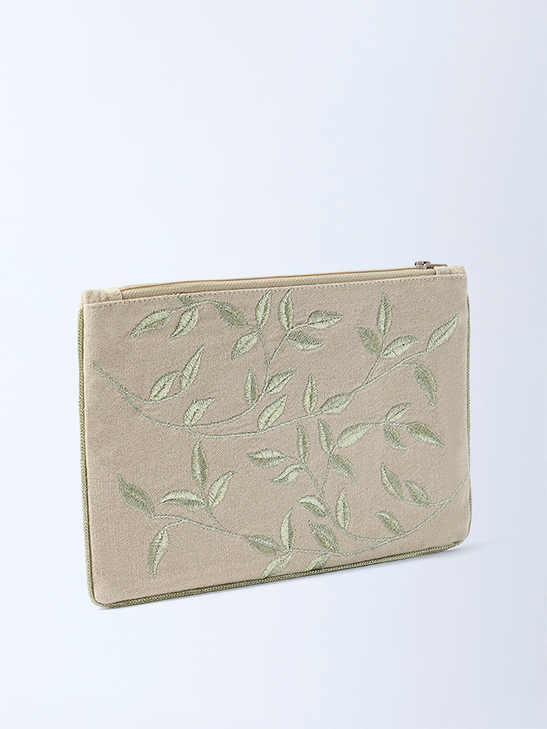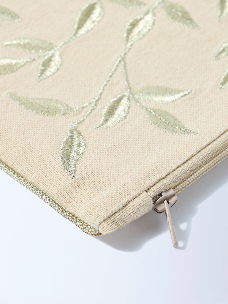 Westside Home Beige Zari Leaf Embroidered Pouch