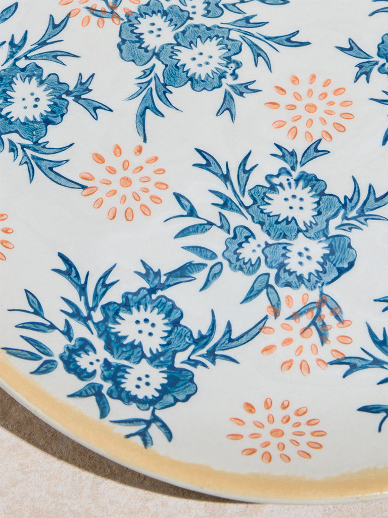 Revamp your dining experience with this dinner plate from Westside Home. Showcasing a delicate floral pattern in serene blue tones. this plate adds a refined touch to your table setting. Crafted from durable. high-quality material. it offers a smooth surface and a sturdy build. perfect for everyday meals or elegant dinners. Its classic design effortlessly complements a variety of tableware. making it a must-have for those who appreciate timeless style and sophistication in their kitchen essentials.
