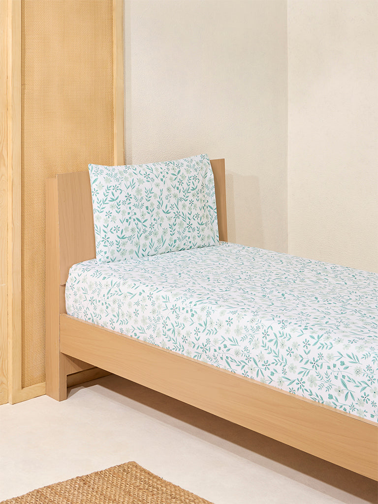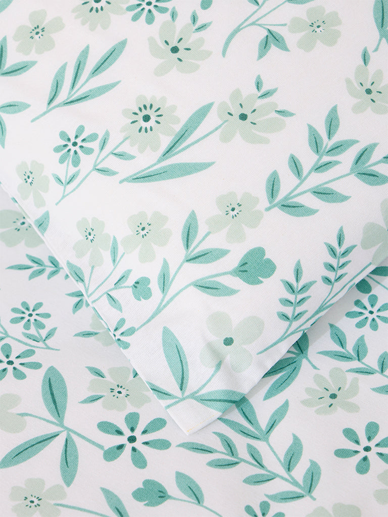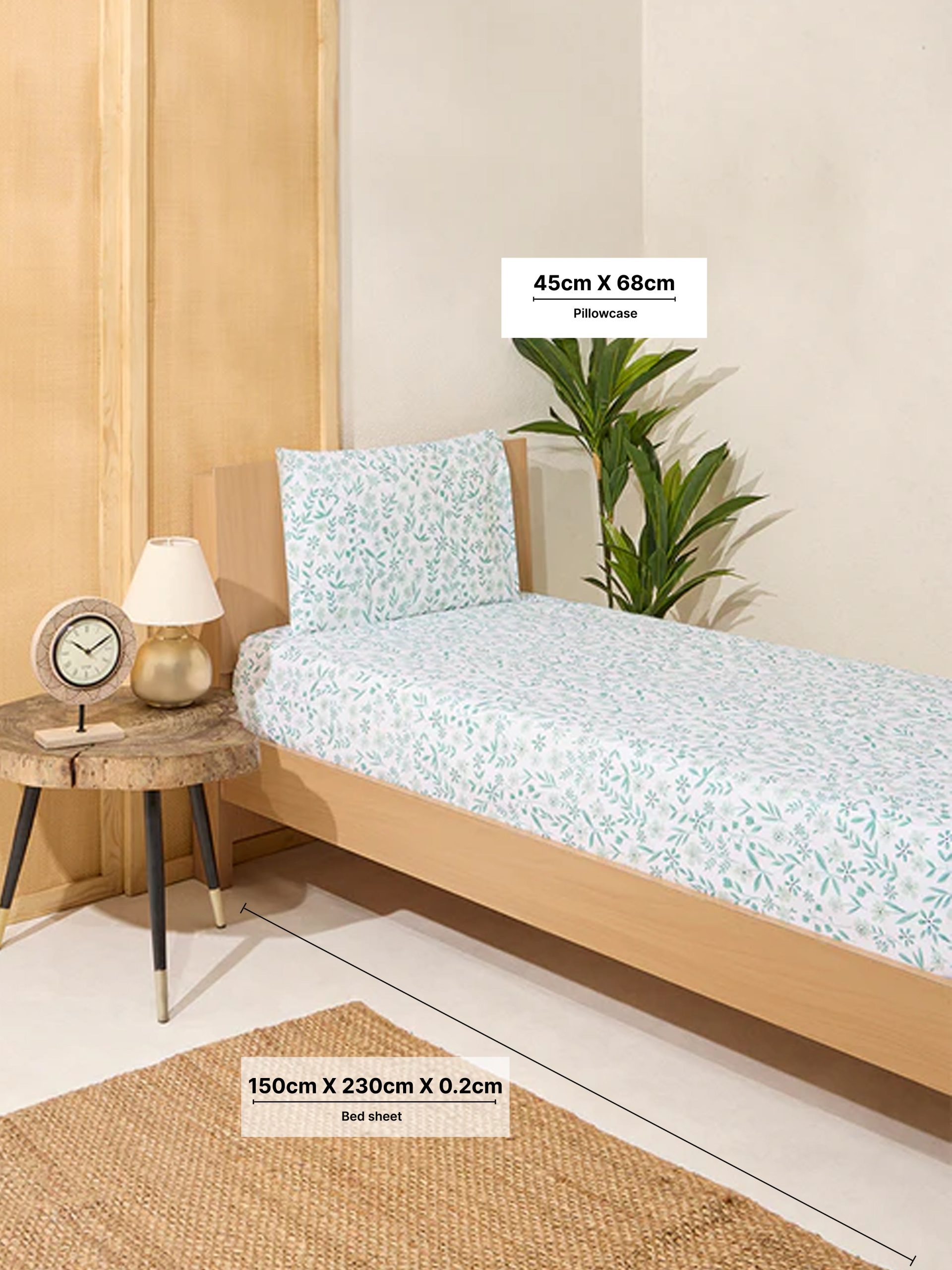 Westside Home Blue Floral Design Single Bed Flat Sheet and Pillowcase Set