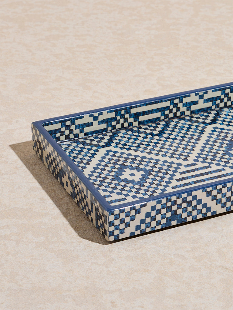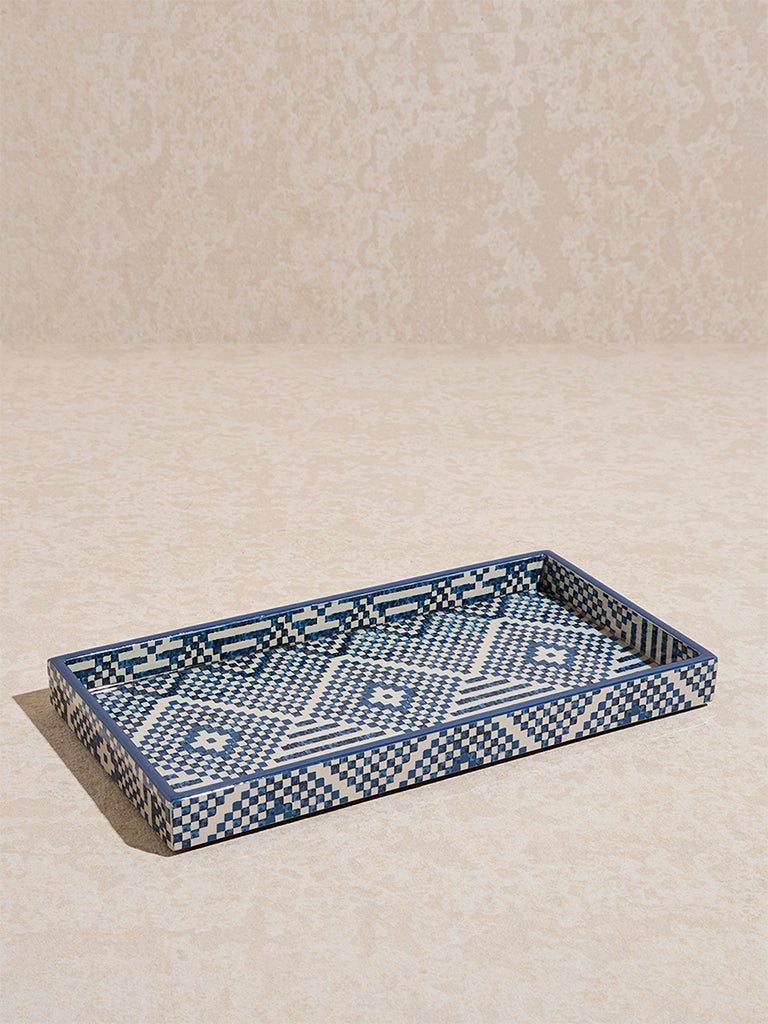 Add a pop of modern artistry to your serving game with this blue tray from Westside Home. defined by contemporary geometric patterns. Whether you’re serving drinks. breakfast in bed. or displaying candles and trinkets. this tray makes a statement. The sturdy build and easy-to-grip edges make it as practical as it is striking. An everyday essential reimagined with a graphic twist that fits right into contemporary homes.