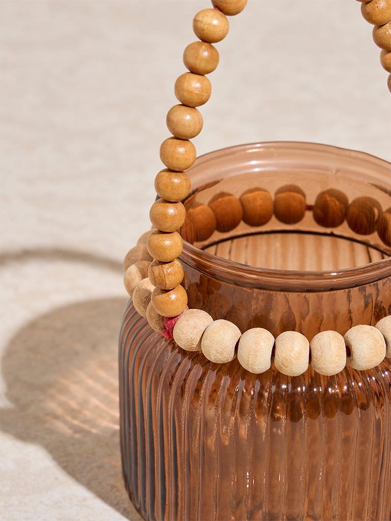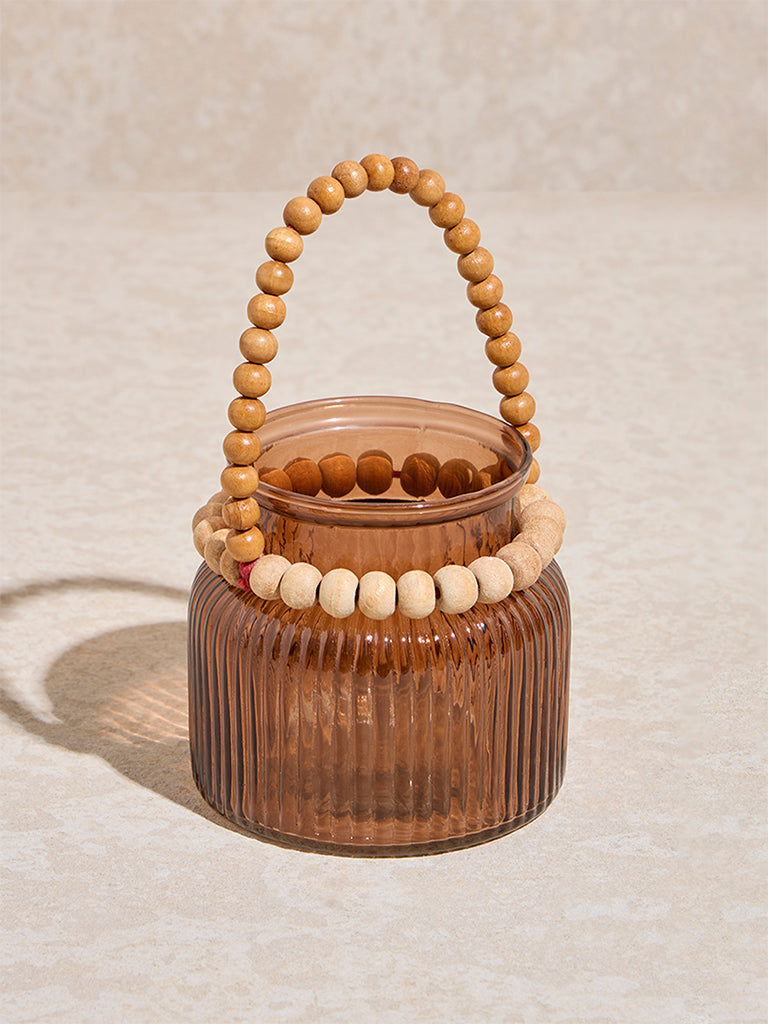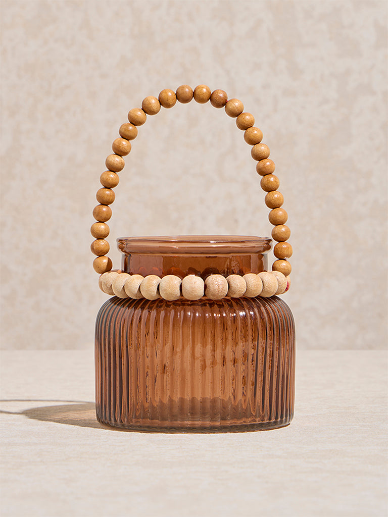 Westside Home Brown Beaded Ribbed Textured Candle Stand