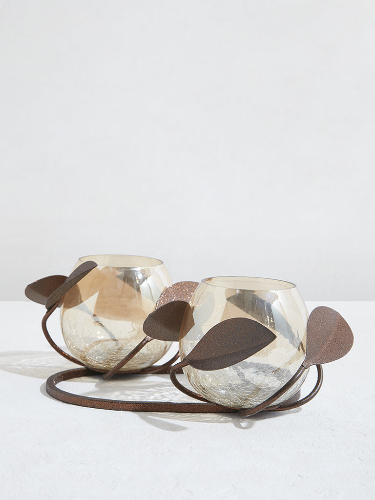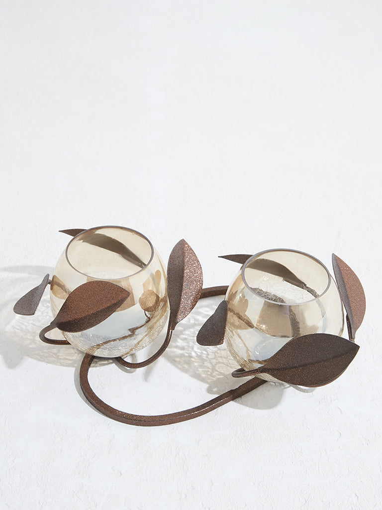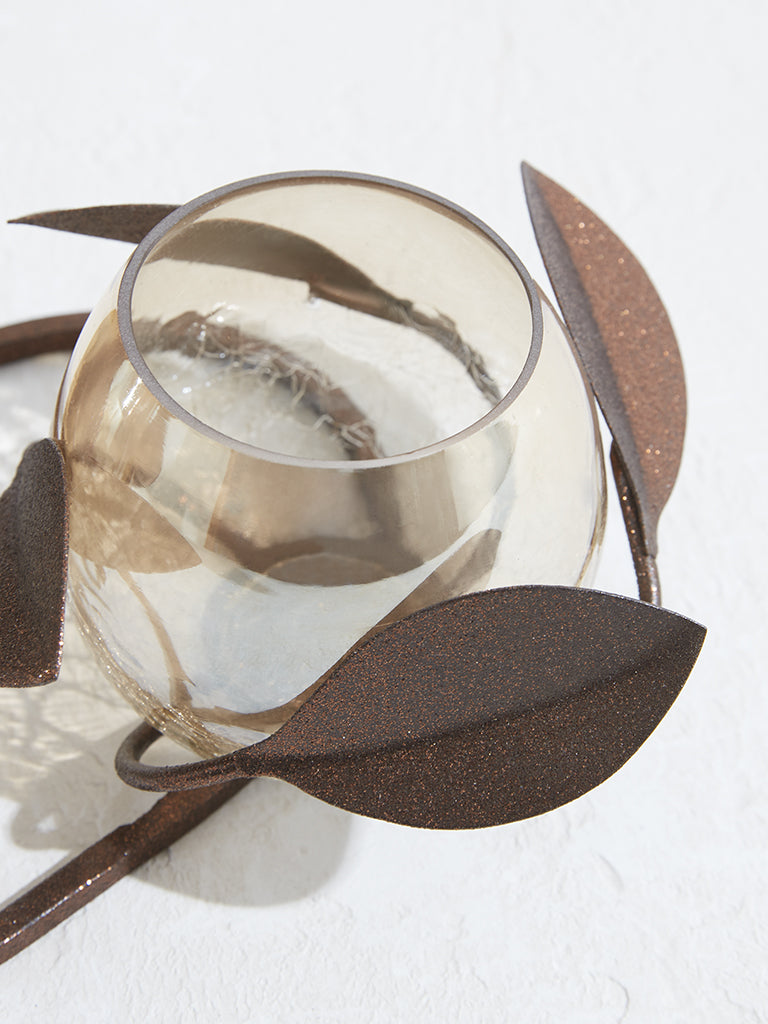 Westside Home Brown Leaf Design Candle Stand
