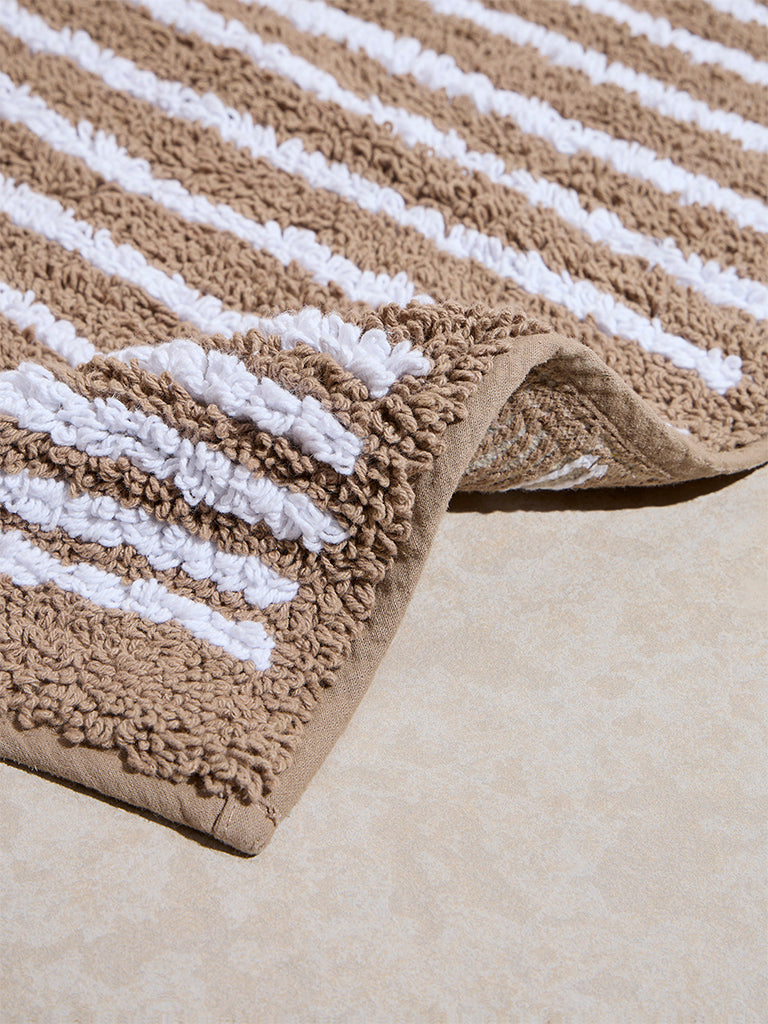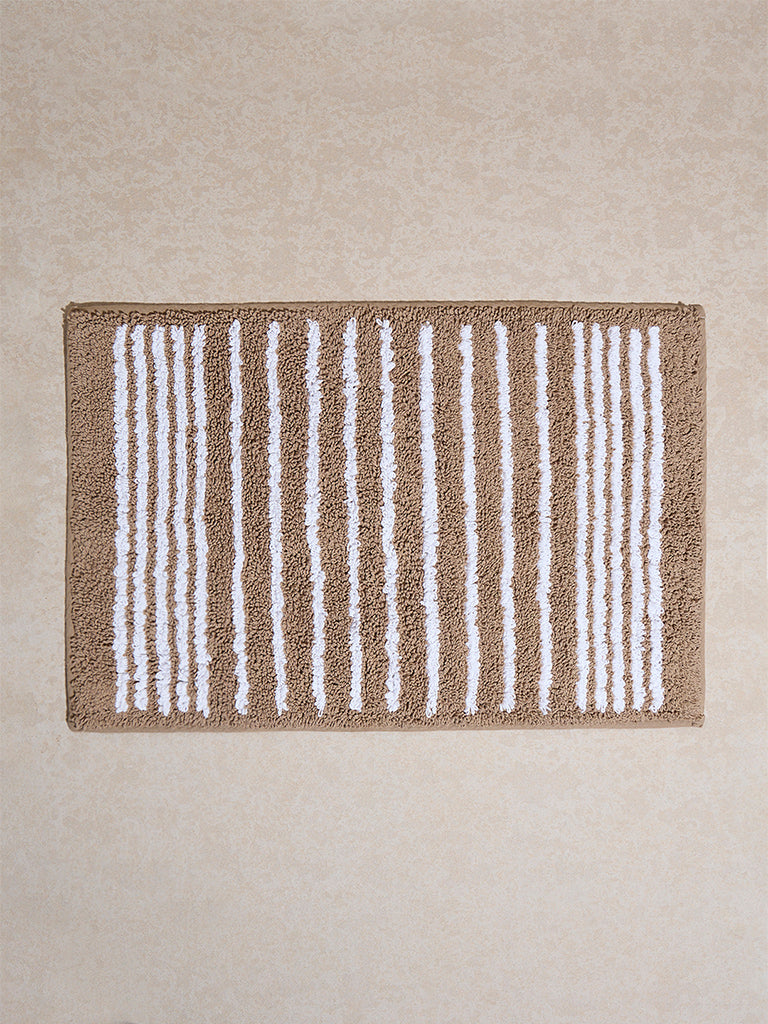 Westside Home Brown Stripe Pattern Bathmat