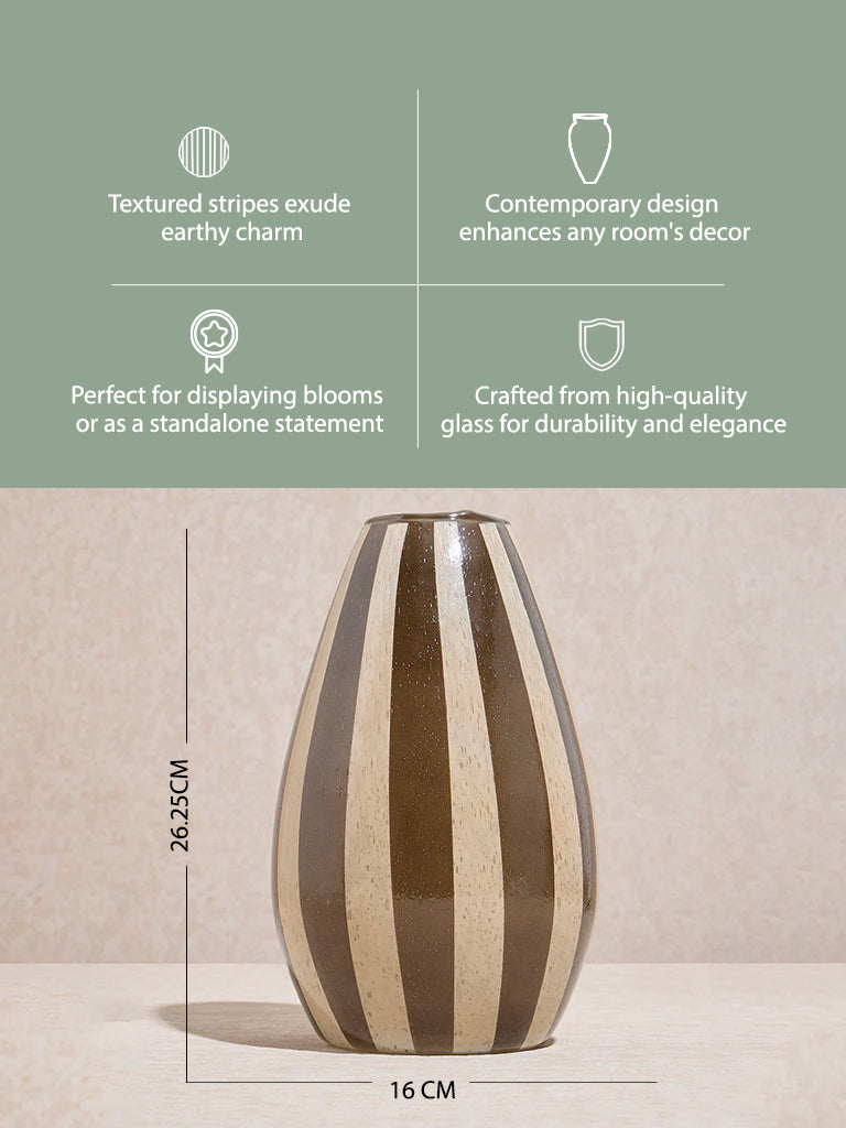 Amplify your d??cor with this vase from Westside Home a striking fusion of earthy tones and contemporary design. The textured brown stripes add a dynamic. artistic flair. making it a versatile piece that complements any room. Perfect for showcasing fresh blooms or standing solo as a statement piece. this vase effortlessly marries function and style. Whether adorning a coffee table or accentuating a sideboard. it brings warmth and sophistication. creating a cozy yet modern aesthetic in your living space.