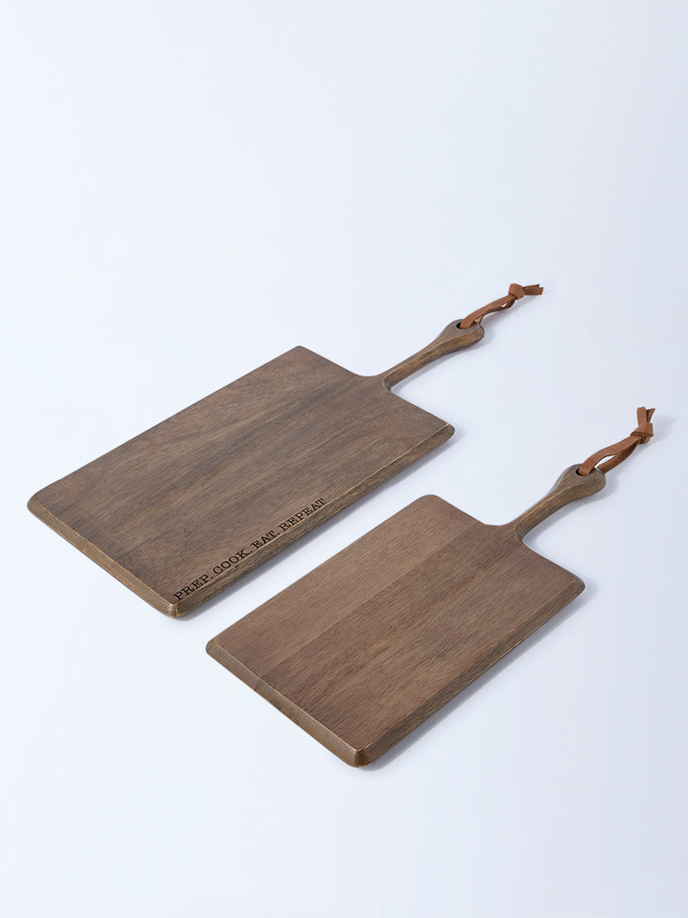 Upgrade your kitchen essentials with this set of two brown wooden choppers from Westside Home. Designed with thin. easy-grip handles for comfortable use. each piece features subtle text detailing that adds personality to your prep routine. Ideal for chopping vegetables. slicing bread. or serving appetisers. they combine durability with decorative charm. A versatile set that works just as well for casual cooking as for stylish serving.