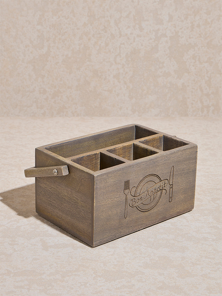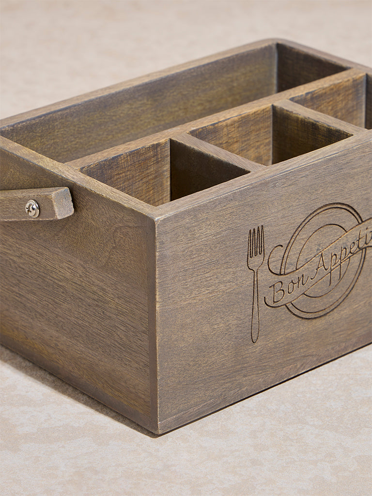 Westside Home Brown Text Design Wooden Cutlery Caddy