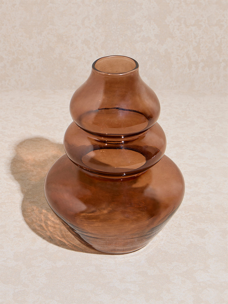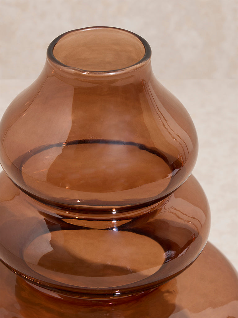 Add depth and personality to your interior with this vase from Westside Home. This sophisticated brown vase features a multi-tiered design with rich amber tones. creating an elegant focal point for any space. Its tiered structure gives it an architectural feel. making it the perfect complement to both minimalist and eclectic d??cor. Fill it with your favorite fresh blooms. or simply let its stunning form shine as an accent piece. This vase exudes a refined aesthetic. adding a touch of timeless beauty to your home.