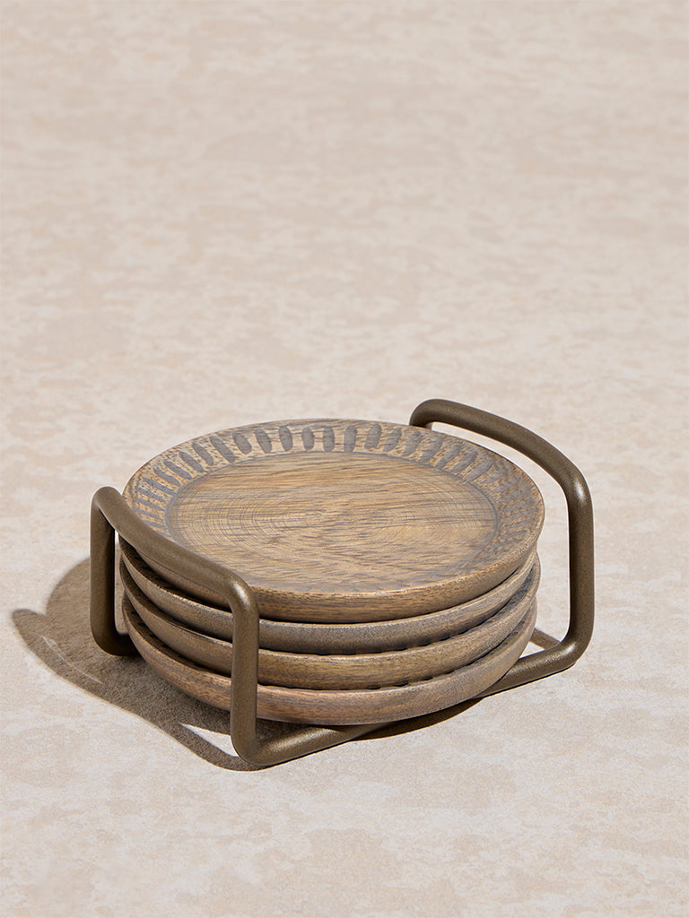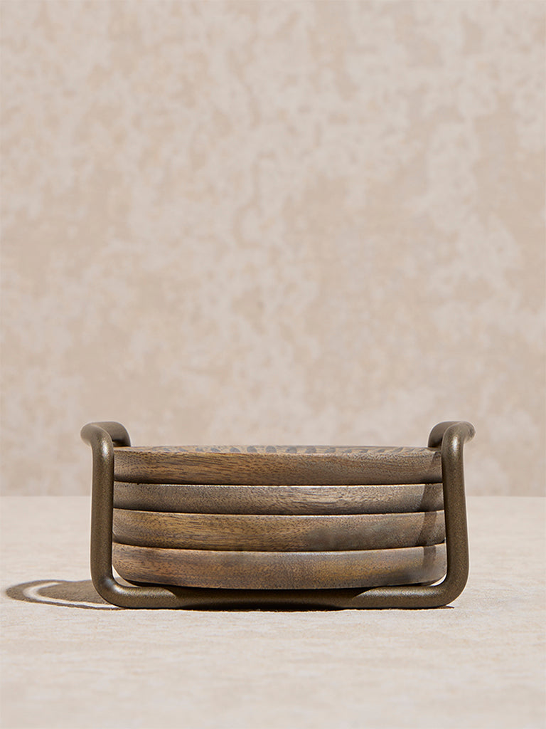 Westside Home Brown Wooden Coasters with Stand (Set of 4)