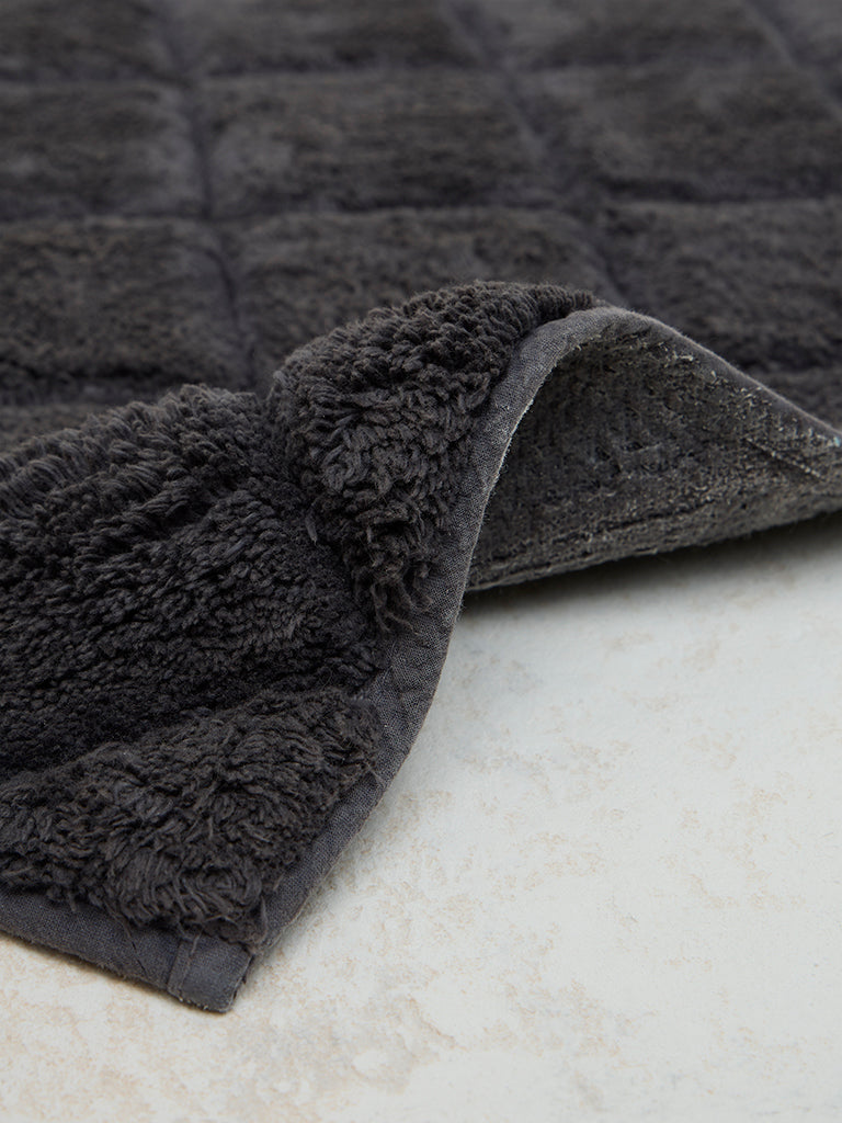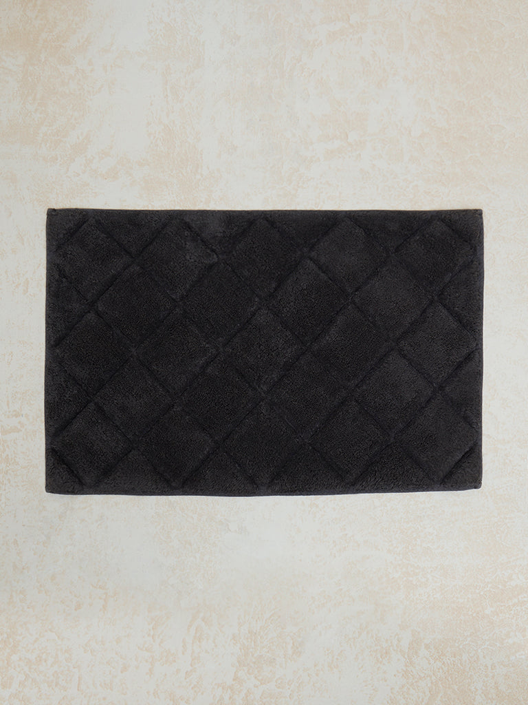 Step onto luxury with this bath mat from Westside Home. Its elegant charcoal shade and geometric diamond pattern bring a contemporary touch to your bathroom floor. Designed for safety and comfort. the non-slip backing keeps it securely in place. even in high-traffic areas. The soft yet durable fabric absorbs moisture efficiently. ensuring a clean. dry space after every shower. Perfect for adding modern flair while prioritizing functionality in your bathroom.