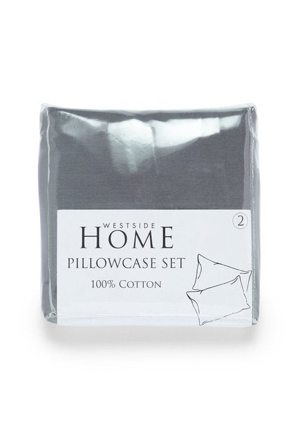Westside Home Charcoal Pure Cotton Pillowcase Set of Two