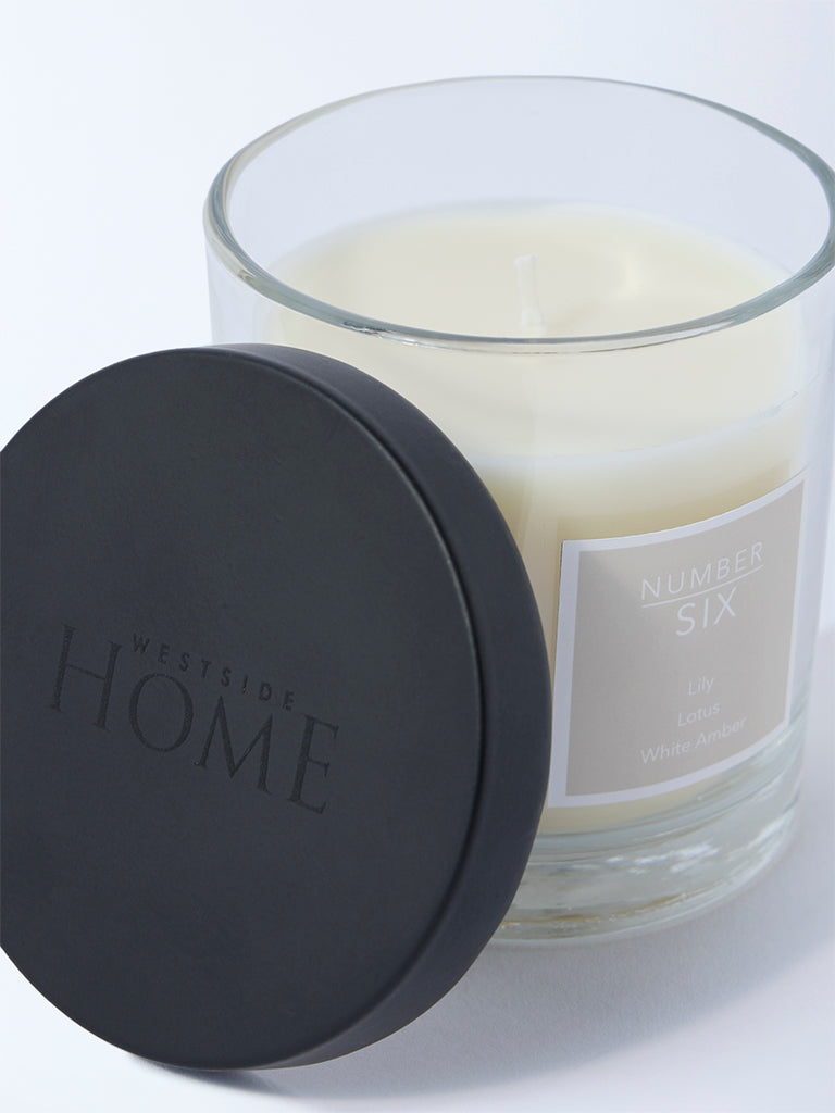Create a serene atmosphere with this clear Noir scented glass candle from Westside Home. infused with a harmonious blend of lily. lotus. and white amber. The fragrance offers a soft. refreshing aura that feels both modern and comforting. Housed in a sleek clear glass holder. it combines mood-enhancing aroma with a clean. versatile design that fits seamlessly into any space.