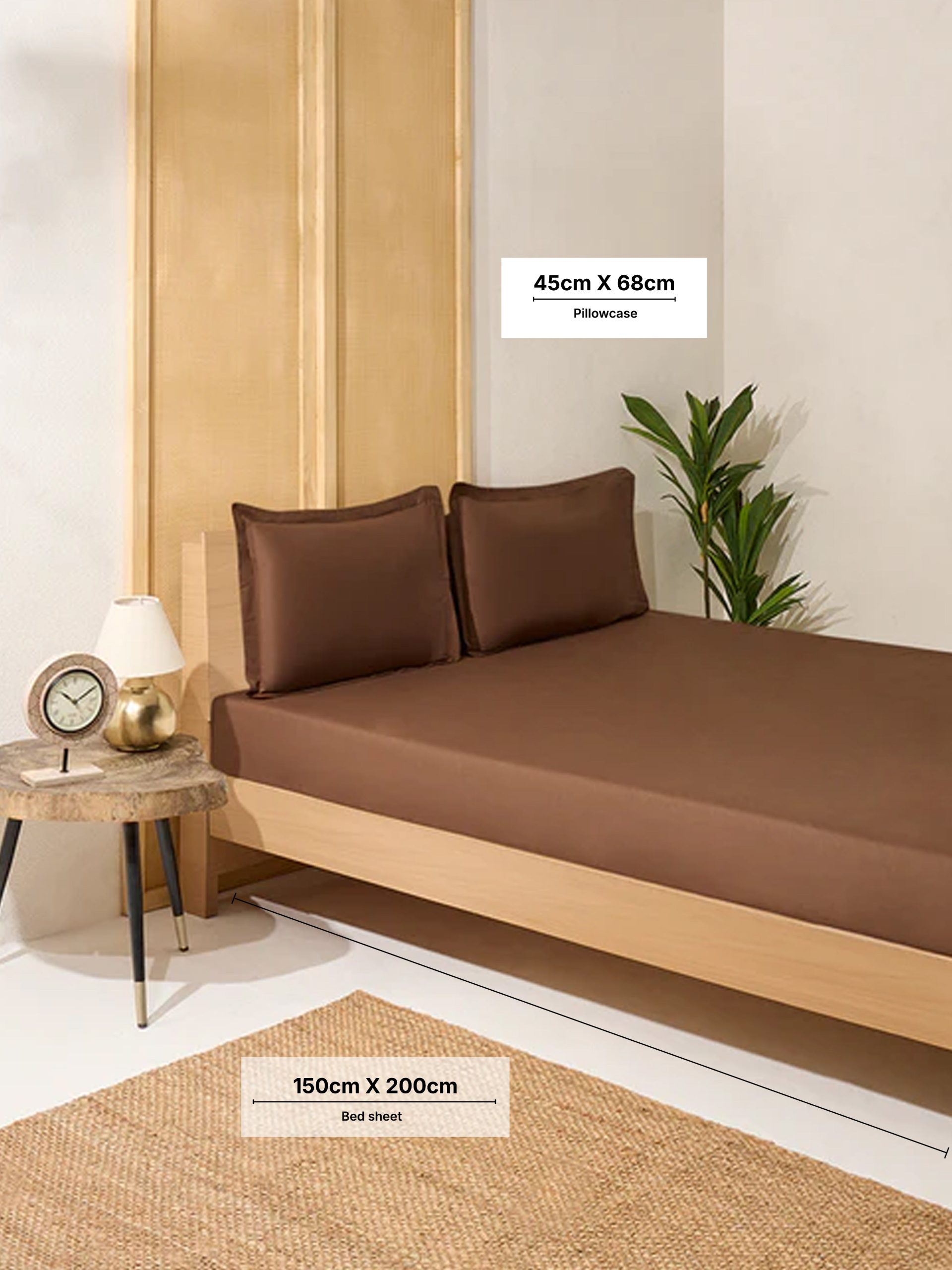 Rich in tone and simple in form. this dark brown queen bed sheet set from Westside Home creates an instant sense of calm. Crafted for comfort and designed to ground your space. it comes complete with two matching pillowcases for a cohesive look. Whether layered with textures or styled solo. its deep. earthy palette offers a restful base for curated bedrooms and quiet nights.