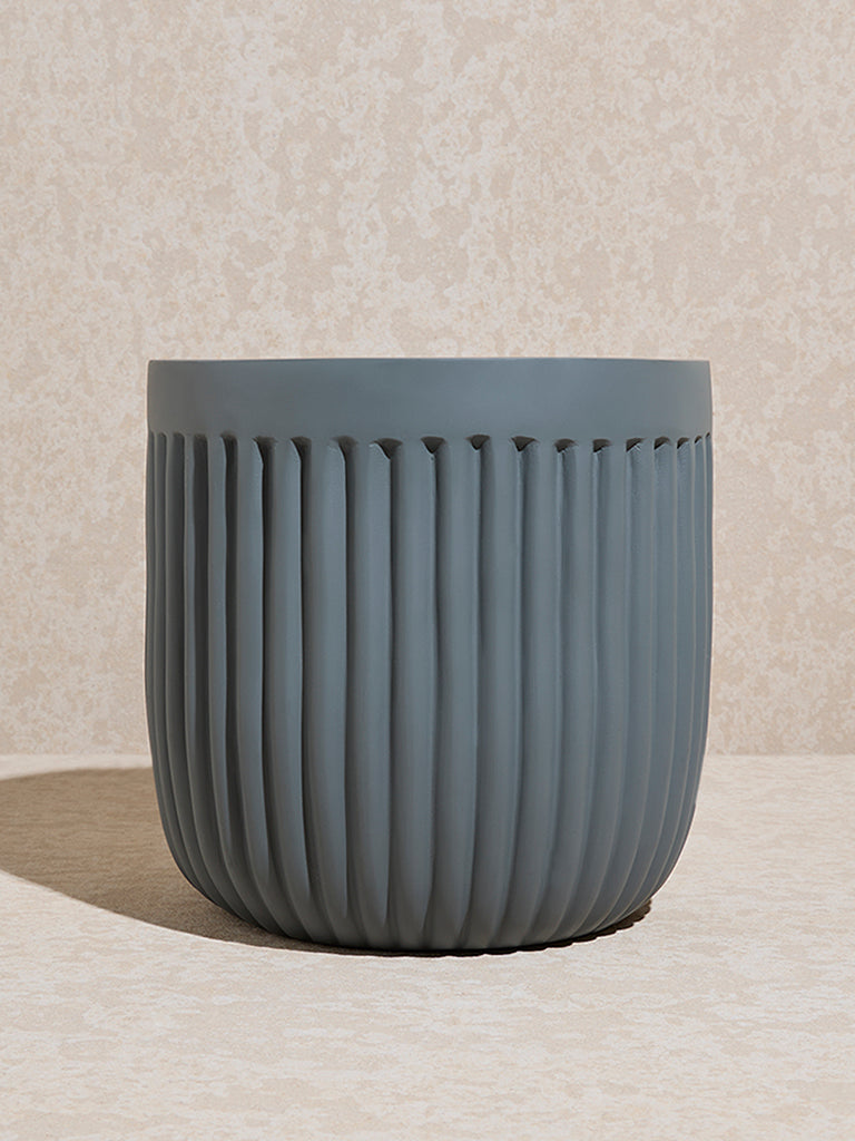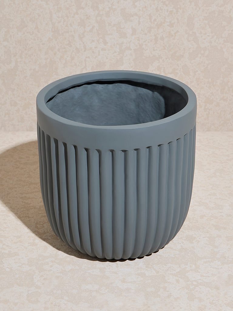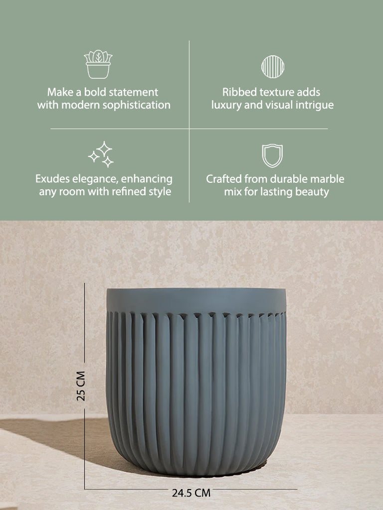 Westside Home Dark Grey Ribbed Textured Marble Planter
