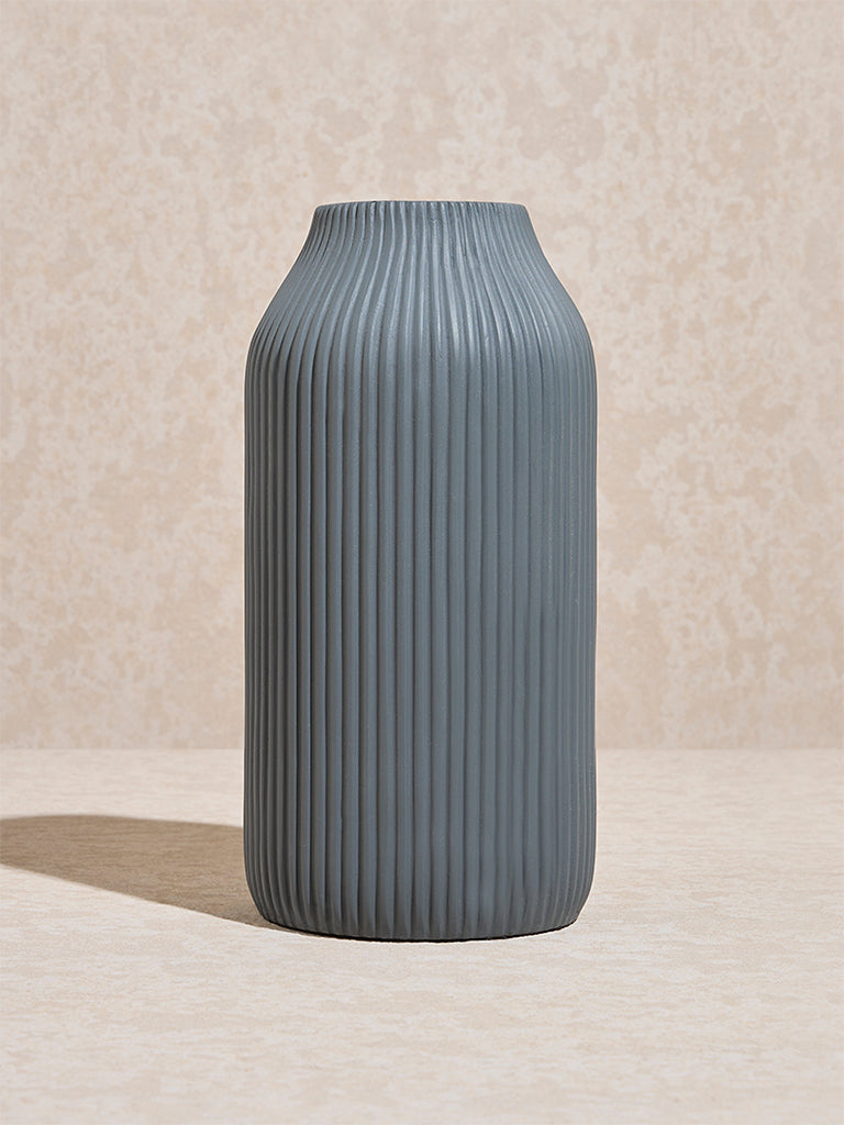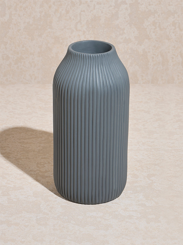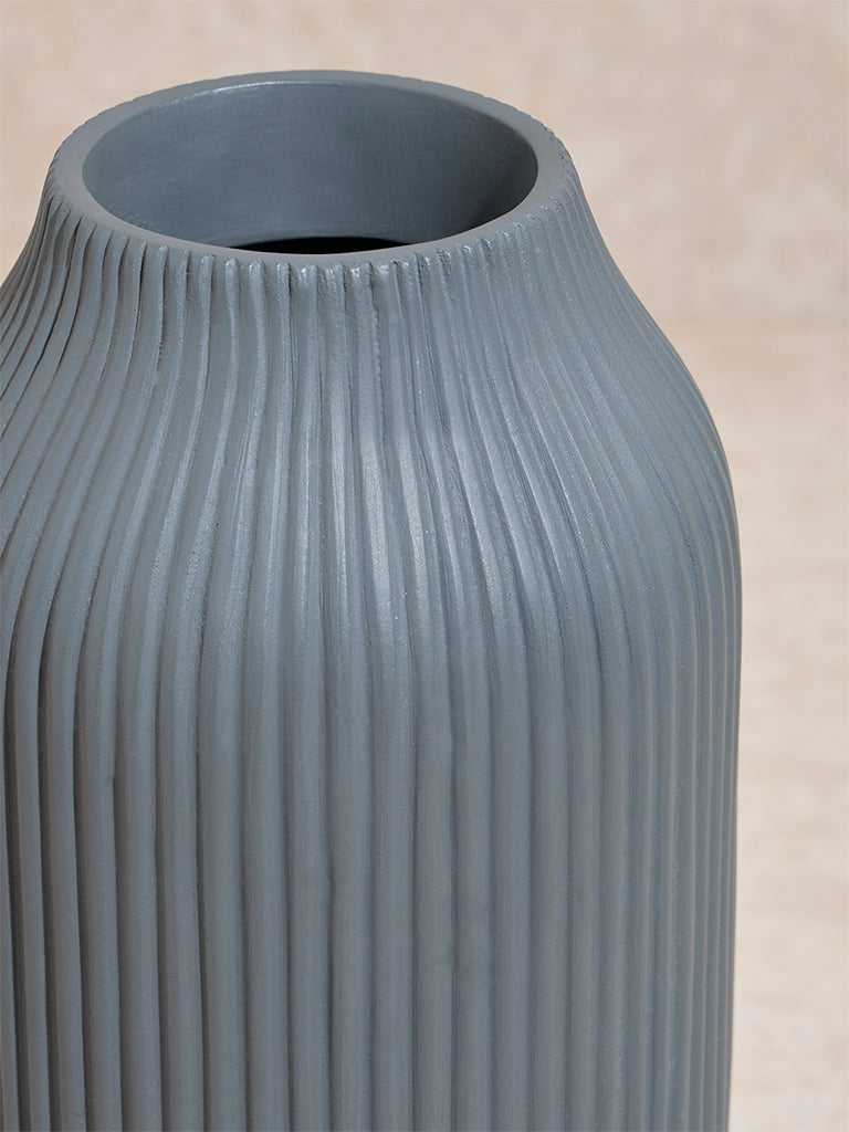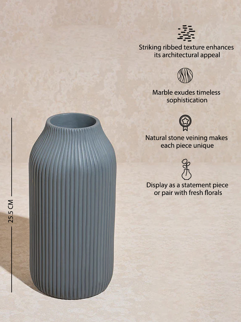 Westside Home Dark Grey Ribbed-Textured Marble Vase