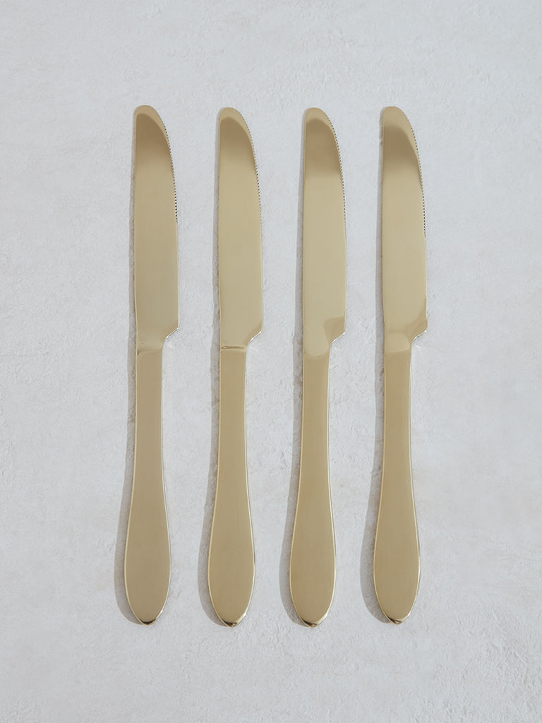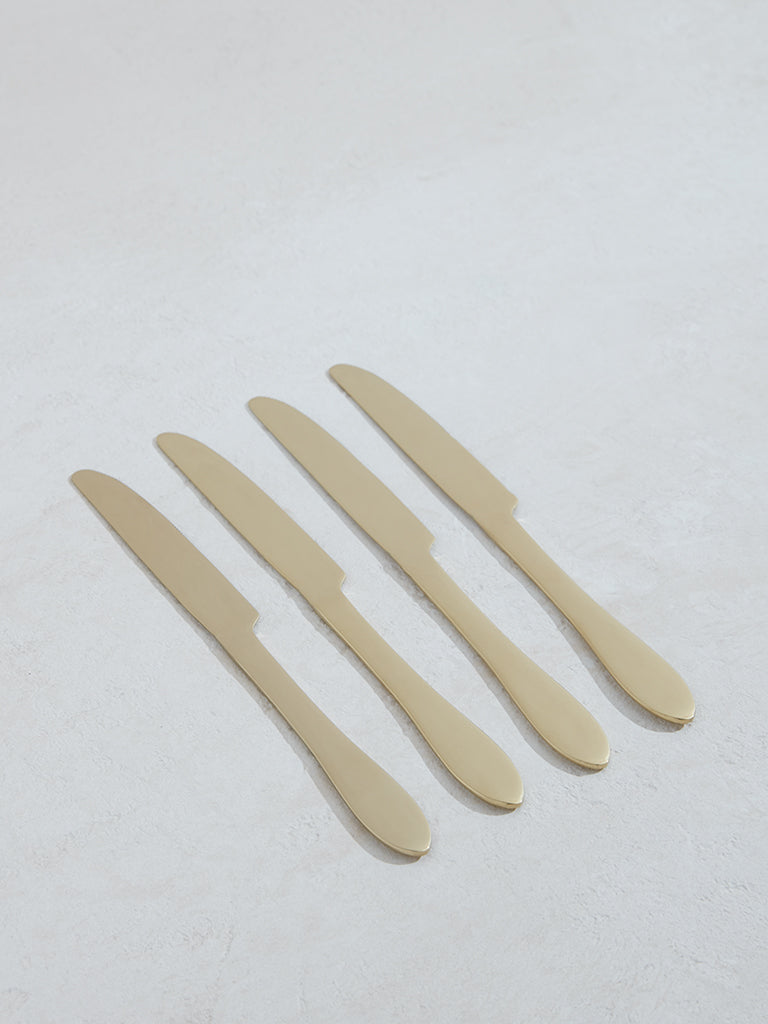 Designed as a set of four. these dull gold butter knifes from Westside Home offer versatility for spreading delightful flavors on your favorite bread or rolls. Whether it’s a cozy breakfast or an elegant dinner party. each knife contributes to the overall aesthetic charm.