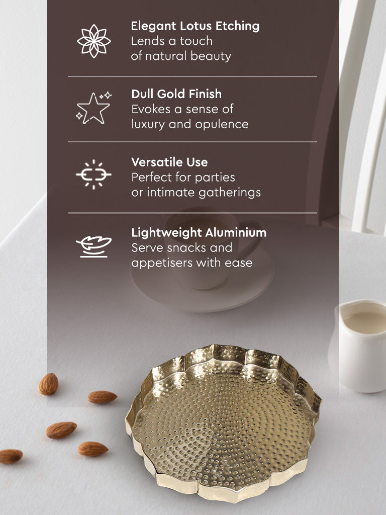 Serve your favorite snacks and appetizers in style with the dull gold lotus etching tray from Westside Home. The dull gold lotus etching adds a touch of elegance and sophistication to your table setting. while the sturdy construction ensures durability and longevity. Whether you’re hosting a party or enjoying a cozy night in. this tray is the perfect accessory for serving and entertaining. Impress your guests with this beautiful and functional piece that combines style and functionality.