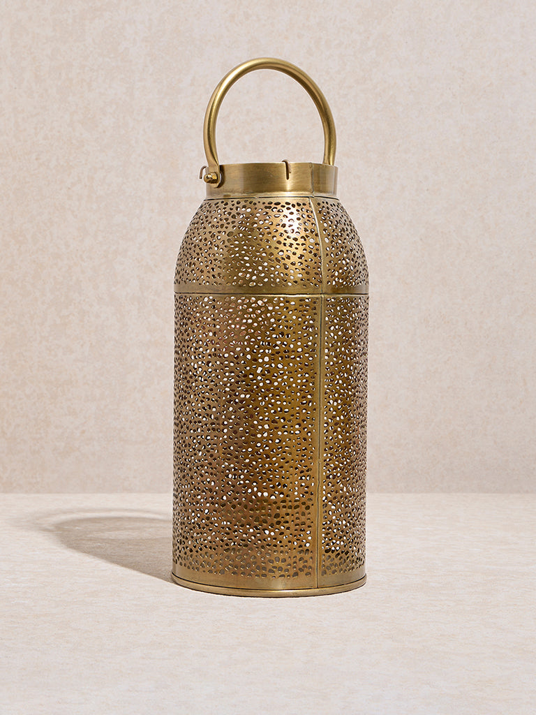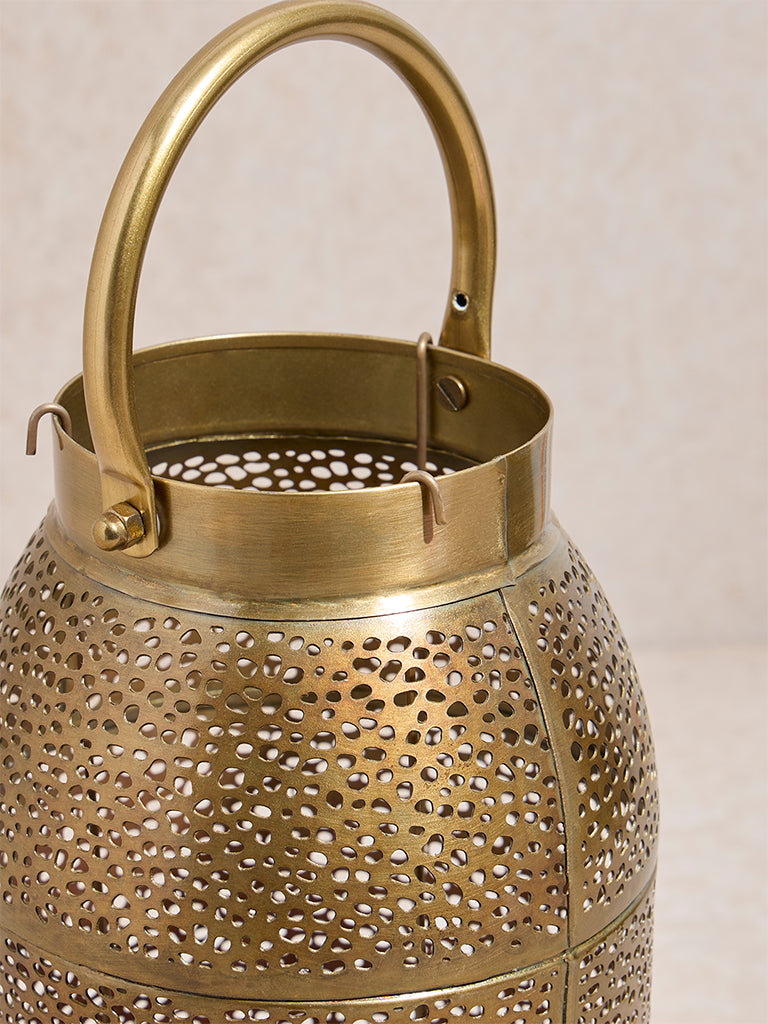 Westside Home Dull Gold Perforated Moroccan Lantern- Large