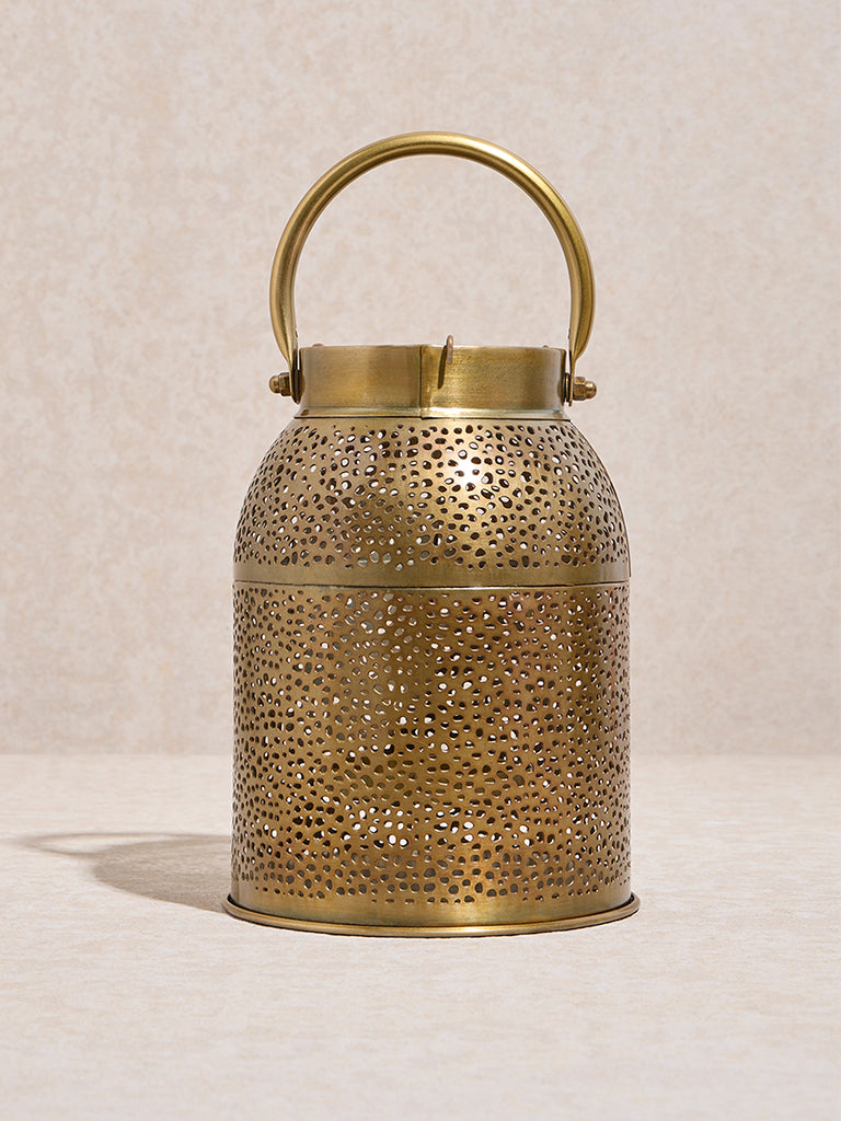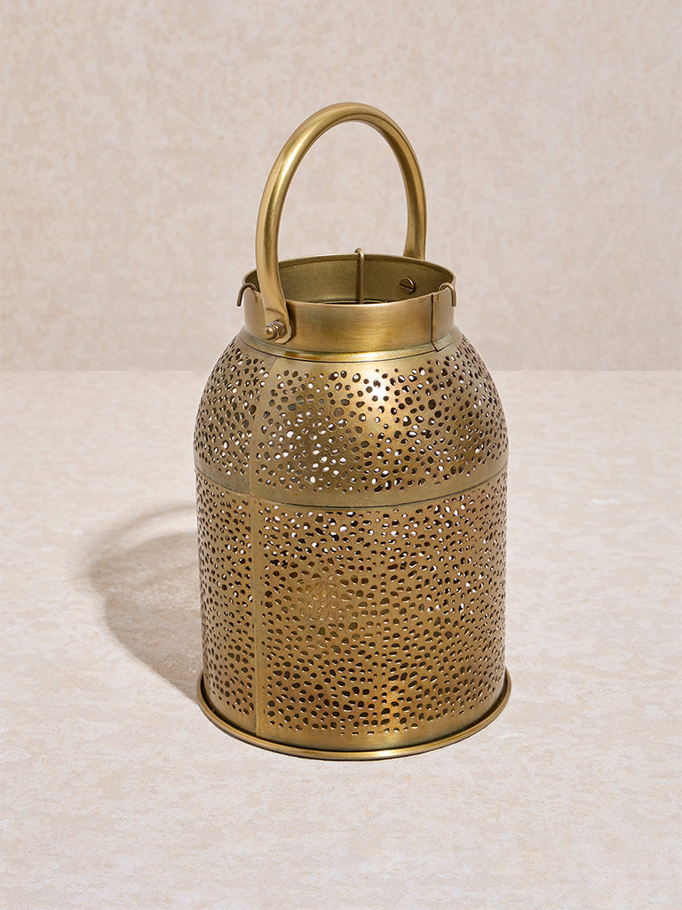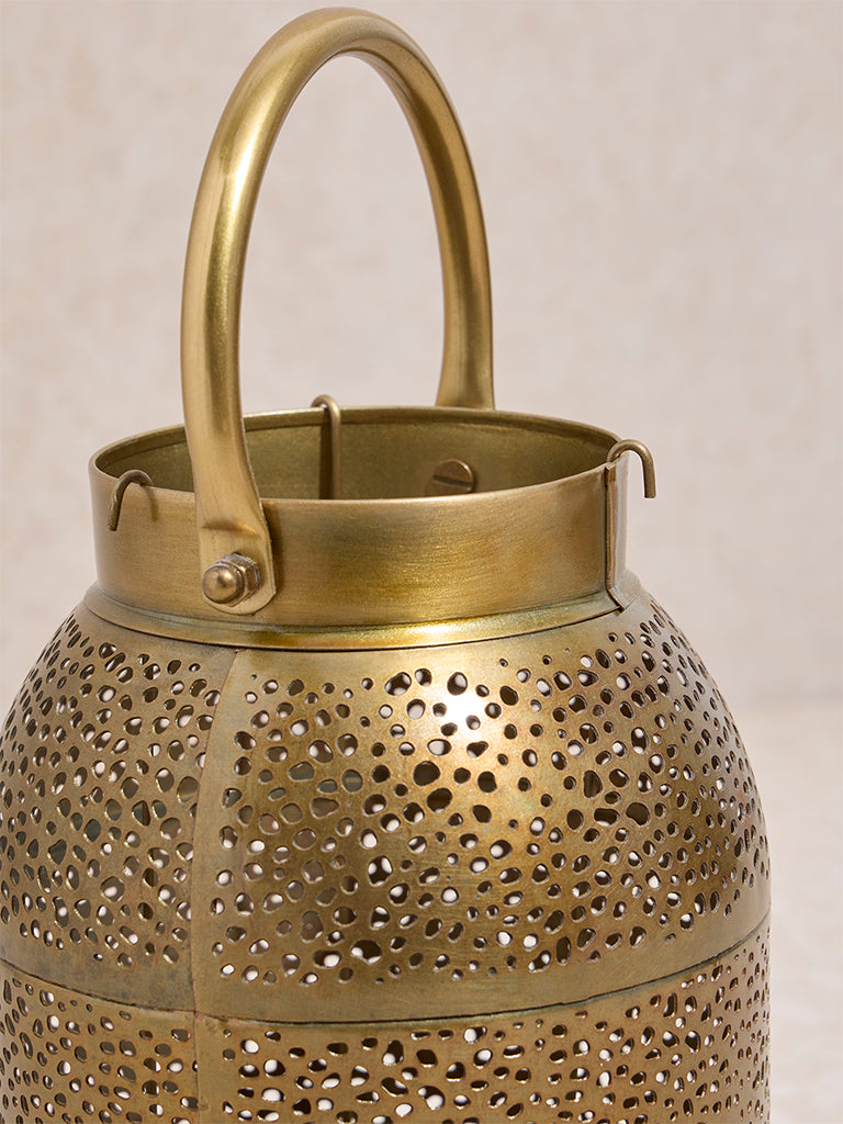 Westside Home Dull Gold Perforated Moroccan Lantern- Small