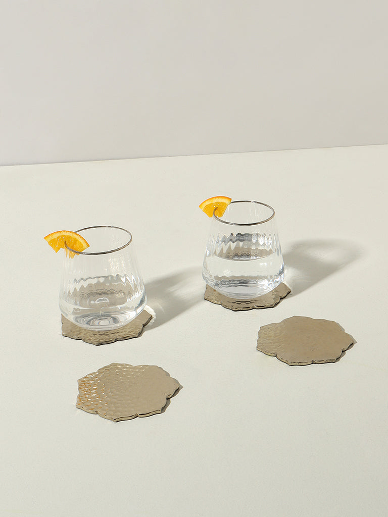 Protect your surfaces and add a touch of elegance with the dull gold punched lotus coasters set of 4 from Westside Home. The punched lotus design adds a unique and decorative look to your home decor. Made from high-quality materials. these coasters are durable and easy to clean. Whether you’re enjoying a hot cup of tea or hosting a cocktail party. these coasters are a practical and stylish choice. Keep your surfaces safe and beautifully decorated with this eye-catching coasters set.