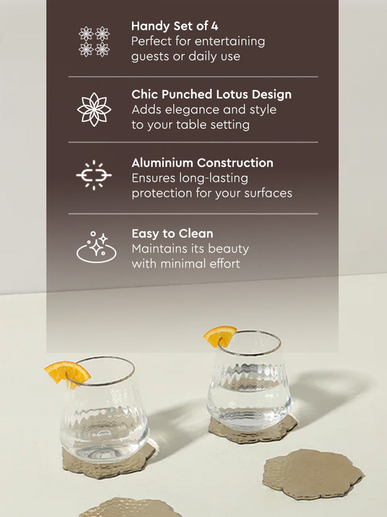 Westside Home Dull Gold Punched Lotus Coasters (Set of 4)