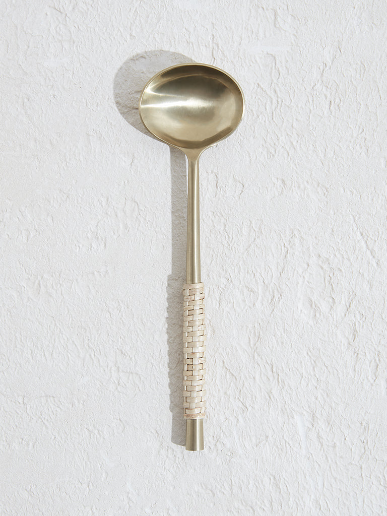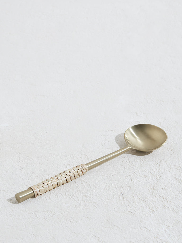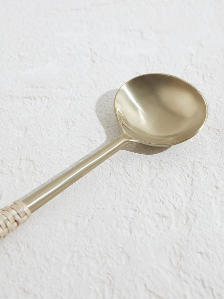 Westside Home Dull Gold Serving Spoon with Rattan-Small