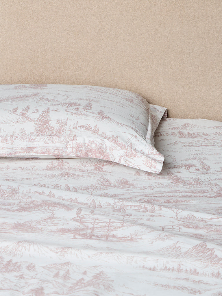 Westside Home Dull Pink Toile Printed King Bed Sheet Set