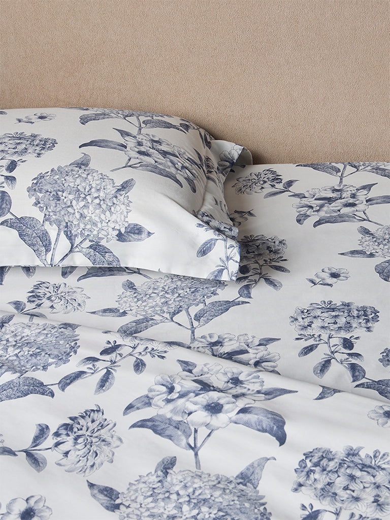 Westside Home Dusty Blue Foliage Pattern King Bed Sheet Set