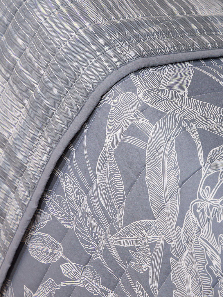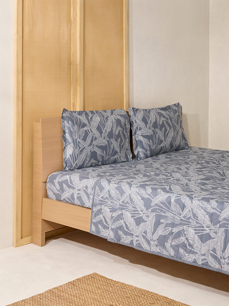 Westside Home Dusty Blue Foliage Print Reversible Quilted Queen Bed Comforter