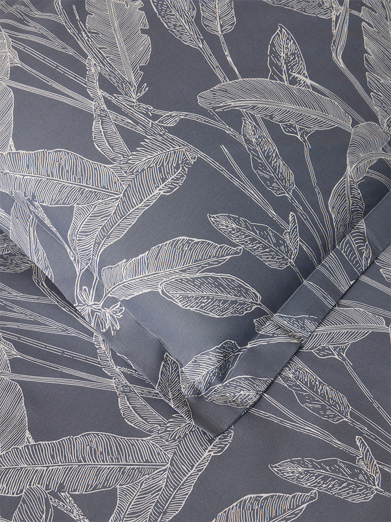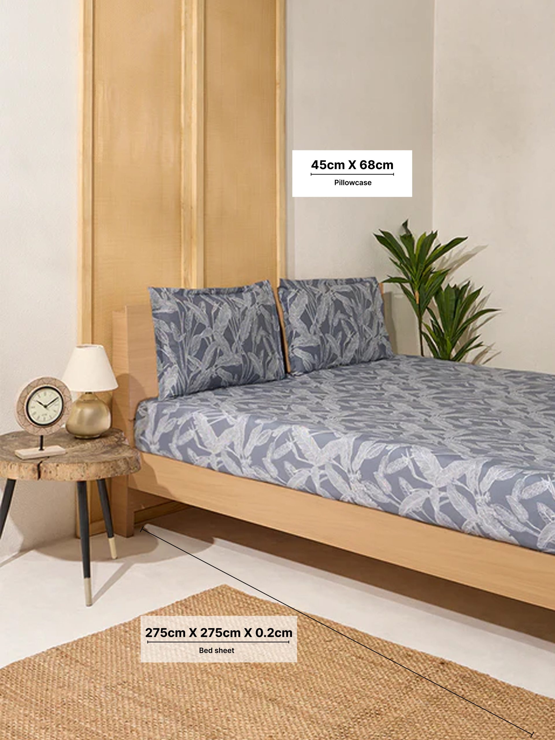Westside Home Dusty Blue Leaf Printed King Bed Flat Sheet and Pillowcase Set