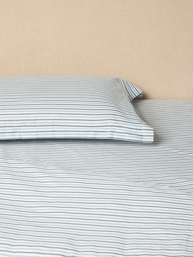 Bring a calming vibe to your bedroom with this dusty blue stripe pattern bed sheet set from Westside Home. Designed with clean. understated stripes in a soothing hue. it lends a touch of elegance and freshness to your space while keeping the look versatile and timeless. Specially crafted for a queen bed. the set includes a matching sheet and two pillowcases for a complete. coordinated finish. Soft and durable. it offers everyday comfort while blending seamlessly with both modern and classic decor.