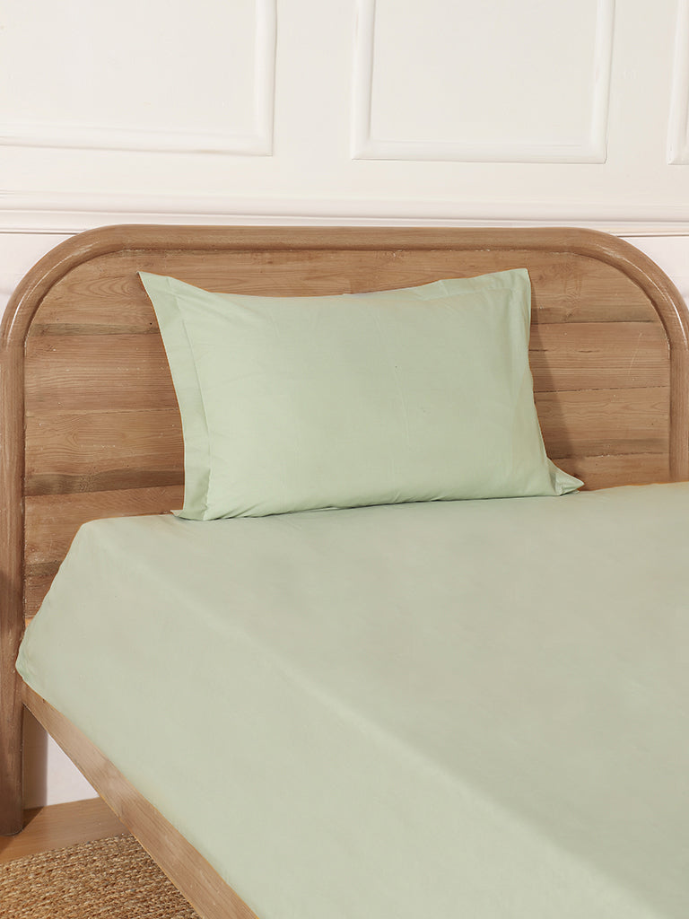 Westside Home Frosty Green Single Bed Flat Sheet and Pillowcase Set