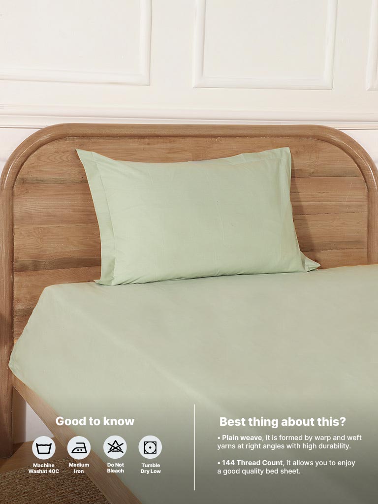 Revitalize your bedroom sanctuary with the Westside Home single bed flat sheet and pillowcase set. This charming ensemble includes a single bedsheet measuring 1.50m x 2.30m and two pillow covers measuring 45cm x 68cm. all bathed in a delightful frosty green palette. Embrace the serene ambiance of this elegant set. designed for both comfort and style.