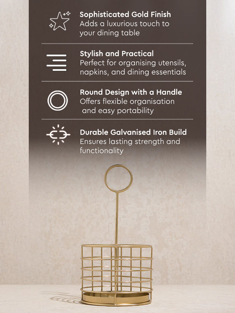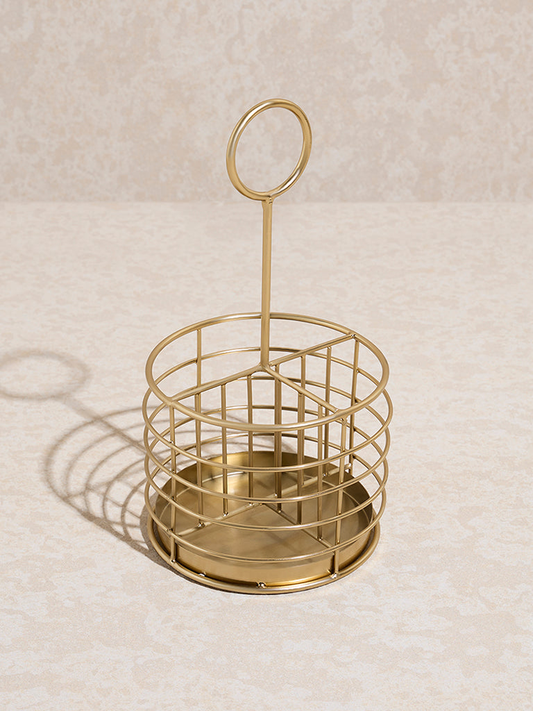 This stainless steel caddy by Westside Home is perfect for keeping your table organized and stylish. Made with high-quality materials. this elegant caddy features a sleek gold finish that adds a touch of sophistication to your table setting. The round design allows for flexible organization of utensils. napkins. and other dining essentials. The sturdy design ensures durability. while the handle allows for easy portability. Whether for everyday use or special occasions. this cutlery caddy brings both functionality and a classy aesthetic to your dining space.
