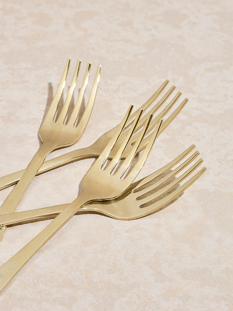 Dine in elegance with this gold fork set from Westside Home. where craftsmanship meets sophistication. Each fork is adorned with intricate etchings that add a regal touch to your table setting. The gleaming gold finish elevates everyday dining. making every meal feel like an occasion. Whether paired with matching cutlery for a coordinated look or used to add a hint of luxury to casual gatherings. this set of four combines timeless beauty with practical finesse. Perfect for those who believe great meals deserve great presentation.