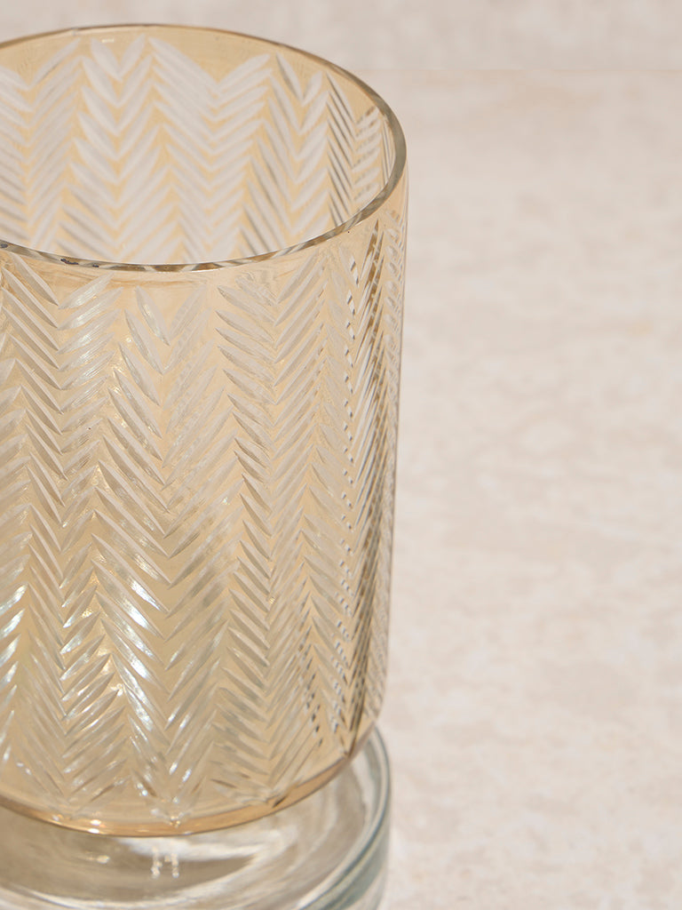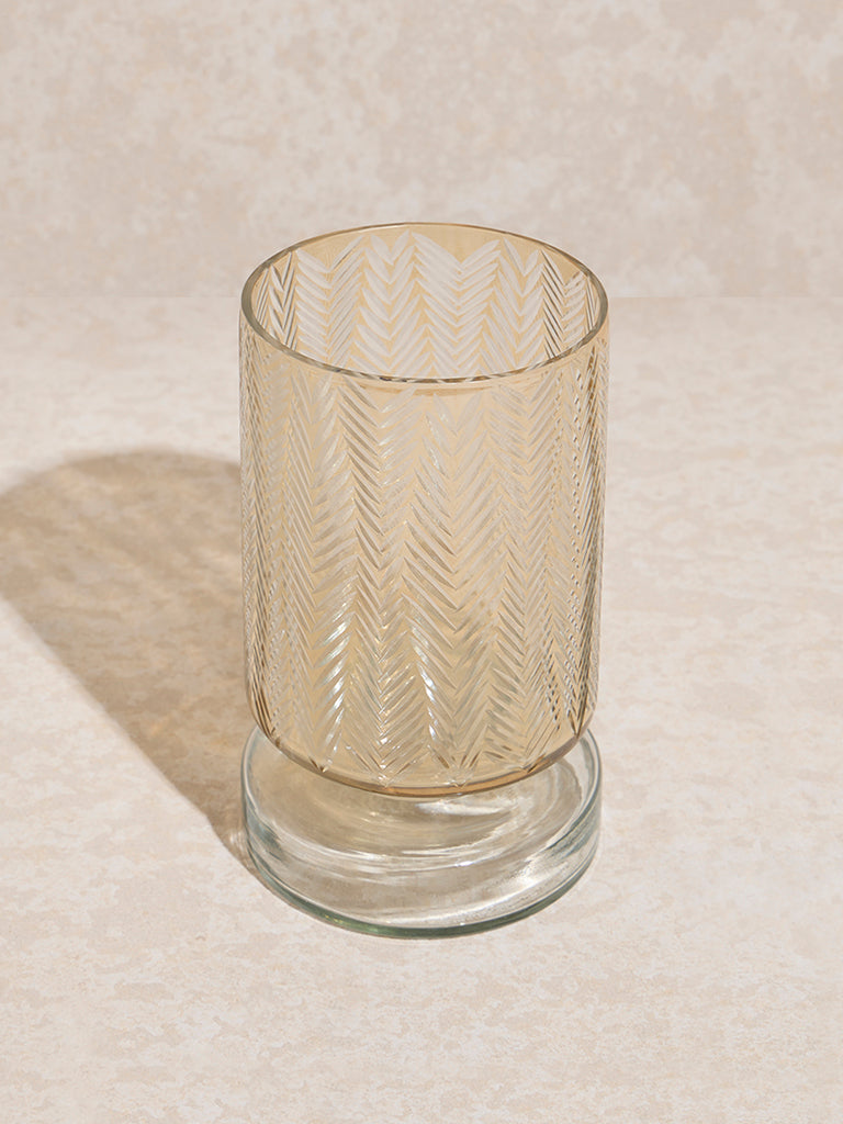 Bathed in the warmth of antique gold. this gold glass candle stand from Westside Home is a luminous masterpiece. steeped in old-world charm. Delicate. timeworn patterns trace their way across the glass. catching flickers of candlelight like whispered secrets from a bygone era. Whether gracing a dinner table. a bedside sanctuary. or a festive gathering. its golden glow transforms any moment into something magical. A blend of vintage opulence and modern refinement. this piece turns the simple act of lighting a candle into an elegant ritual.