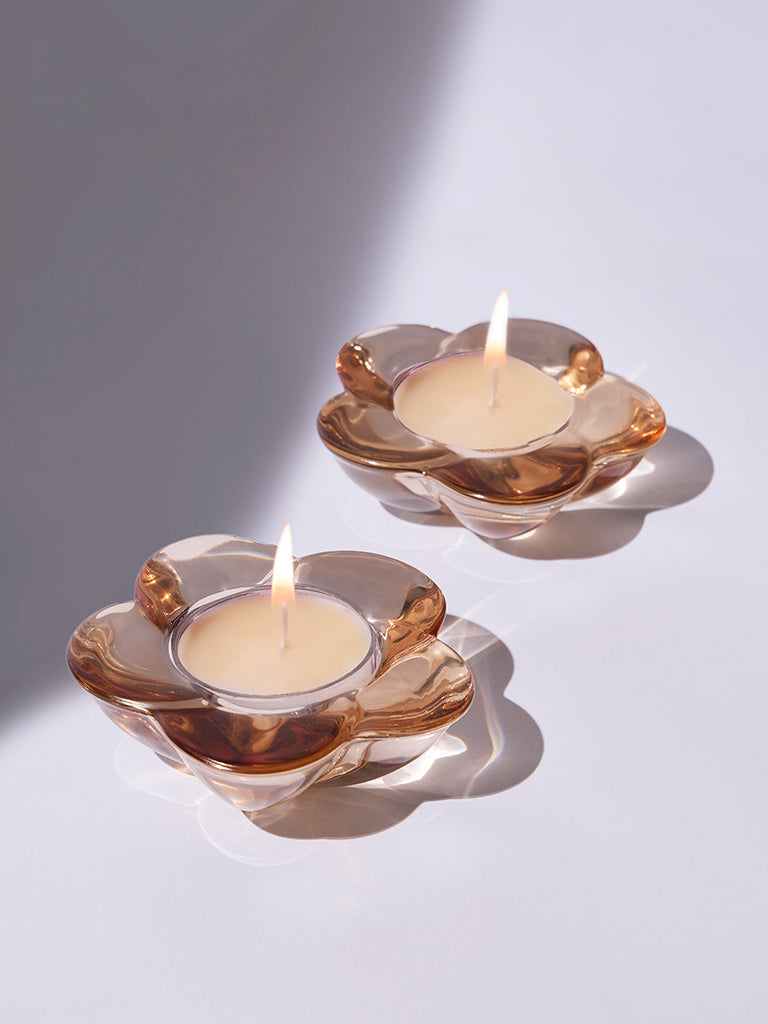Westside Home Gold Floral Tealight Candle Holder (Set of 2) – Festive Season Gift