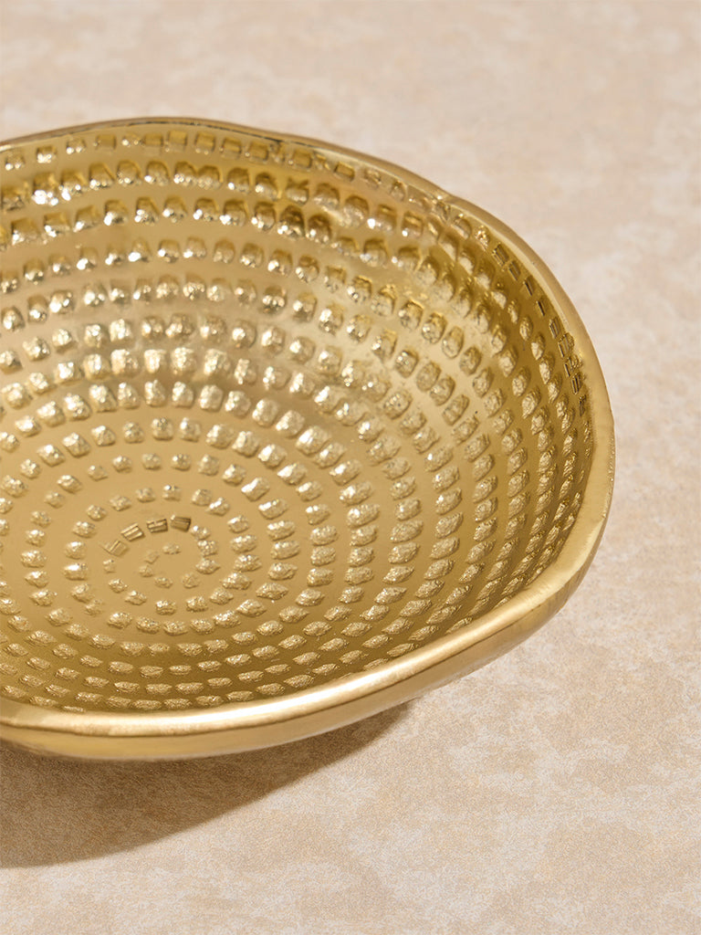 Small in size. big on impact??this gold hammered platter from Westside Home adds instant polish to your hosting game. Its textured surface catches the light beautifully. making it ideal for serving snacks. sweets. or canapes. Doubling as a chic decorative tray. it holds everything from jewellery to scented candles with a touch of glamour. A multifunctional favourite for the style-conscious.