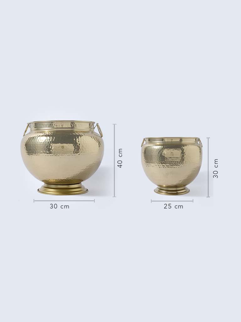 Infuse tradition with a contemporary twist through this gold urli planter from Westside Home. With its wide silhouette and artisanal hammered finish. it captures a warm. reflective glow that pairs beautifully with floating candles. petals. or lush greens. Ideal as a centerpiece for festive gatherings or a statement decor element for entryways and living rooms. its large size offers endless styling possibilities. Rooted in heritage yet reimagined for modern homes. it becomes a timeless accent of beauty and celebration.
