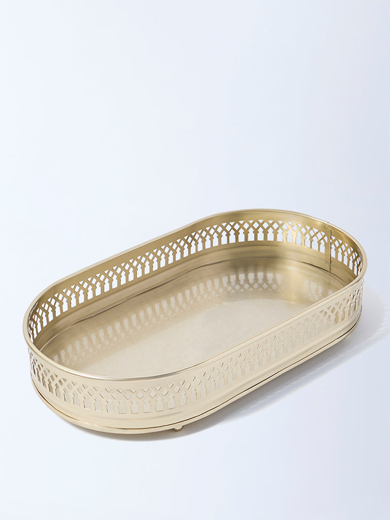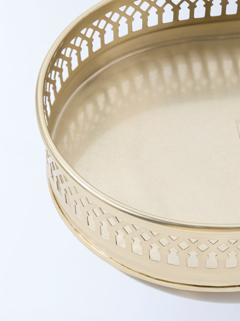 Serve in style with this gold laser-etched tray from Westside Home. Designed to impress. it features intricate detailing across the surface that catches the light beautifully. adding a refined touch to every occasion. The metallic finish lends a modern edge while retaining timeless elegance. making it perfect for hosting guests or simply elevating everyday dining. Sturdy yet stylish. the tray doubles as a decorative accent when placed on coffee tables or consoles. offering both functionality and visual appeal in one statement piece.