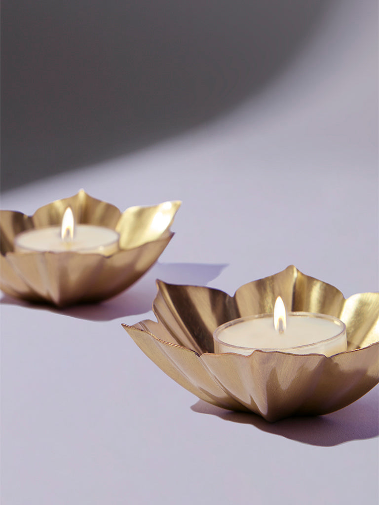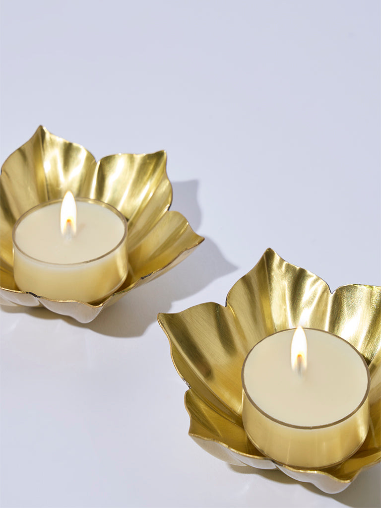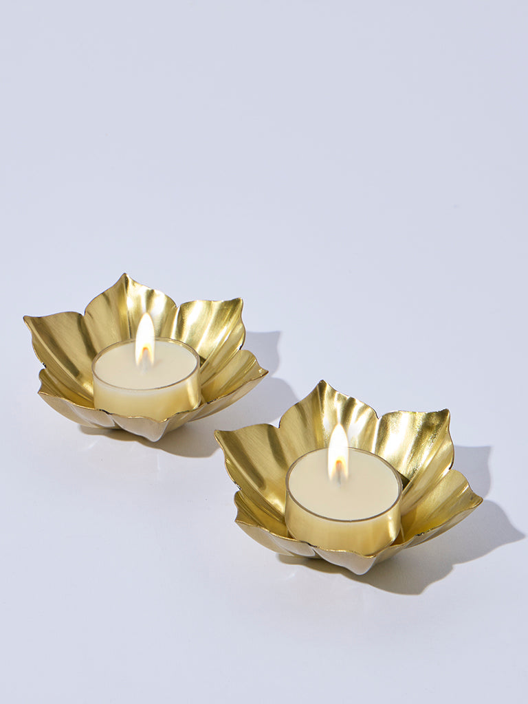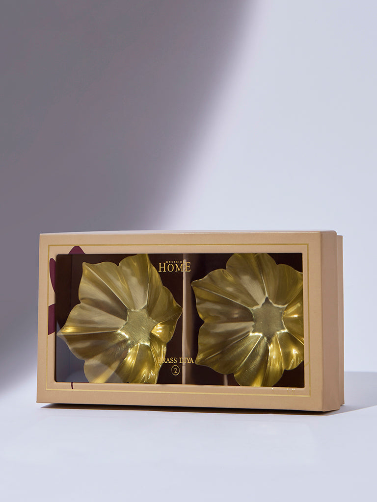 Westside Home Gold Lotus-Shaped Diyas (Set of 2) – Festive Season Gift