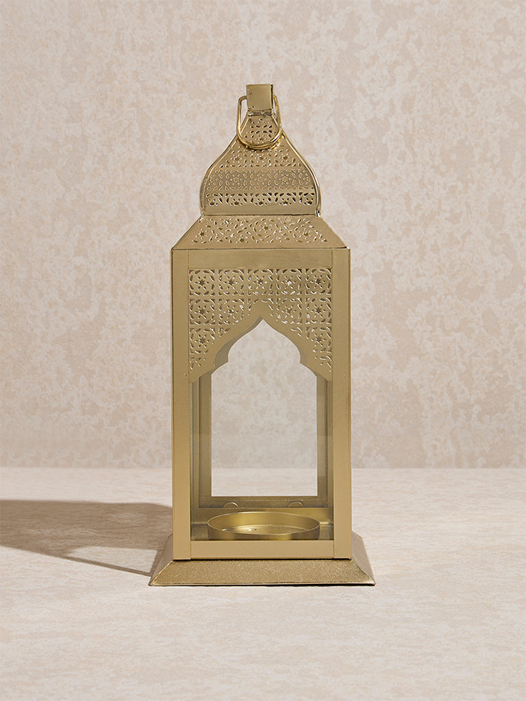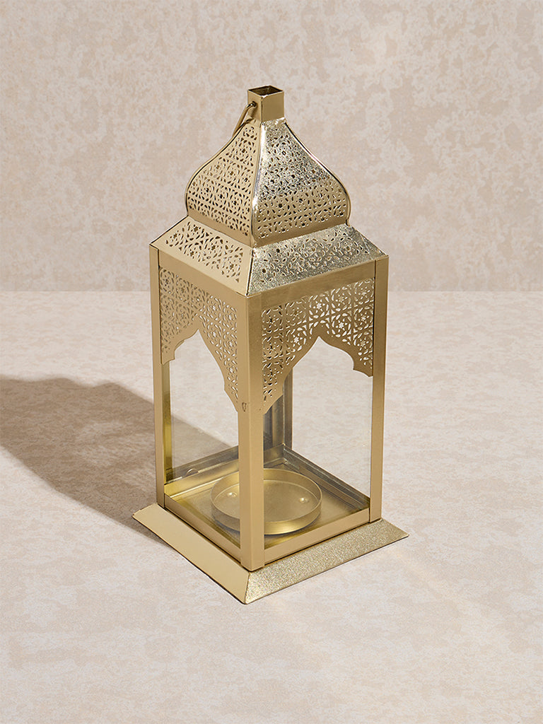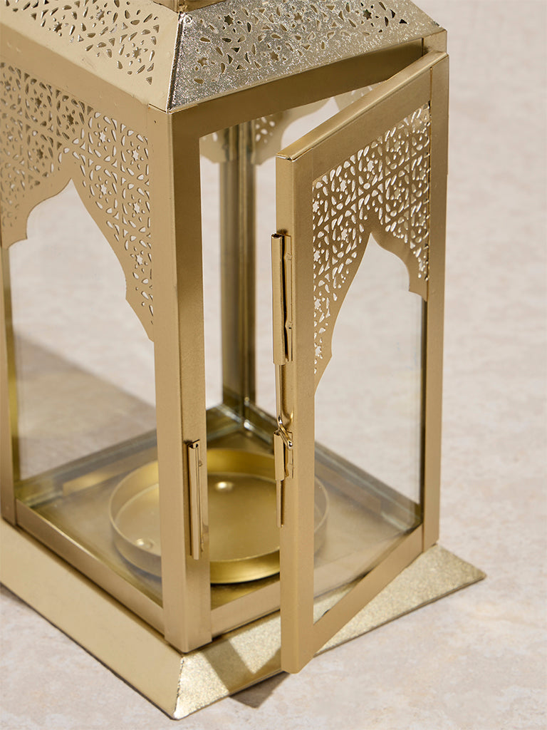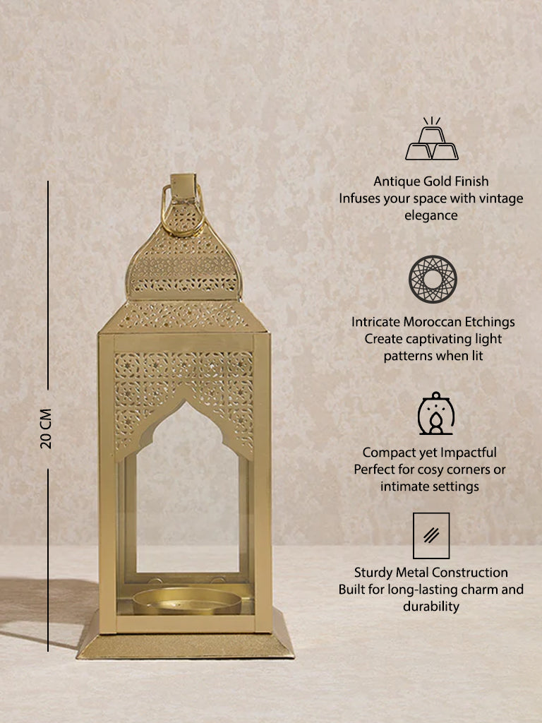 A little touch of magic. this gold Moroccan etched lantern from Westside Home brings warmth and character to any nook. Its intricate etchings and antique gold finish lend it an air of vintage charm. while the delicate cutouts create stunning light patterns when a candle flickers inside. Compact yet full of personality. this lantern is perfect for cozy corners. coffee tables. or as part of a curated centerpiece. Whether used alone or paired with its larger counterpart. it’s a piece that turns everyday moments into something extraordinary.