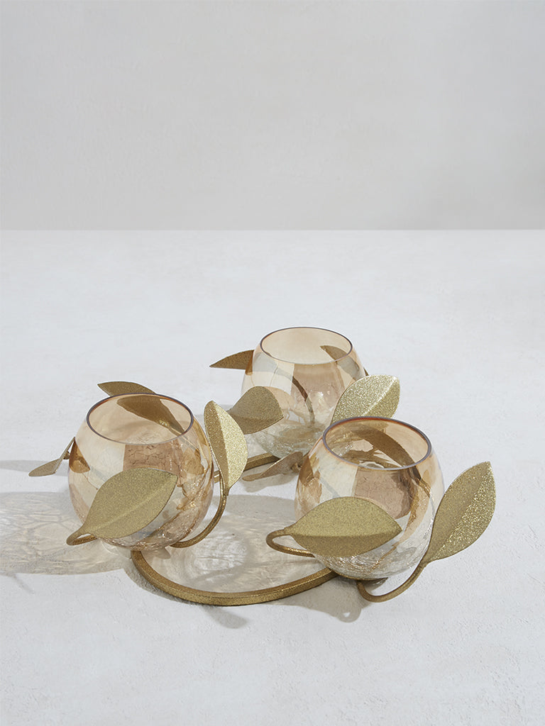 Be the first to review “Westside Home Gold Oval Tripple Leaf Candle Stand” Cancel reply