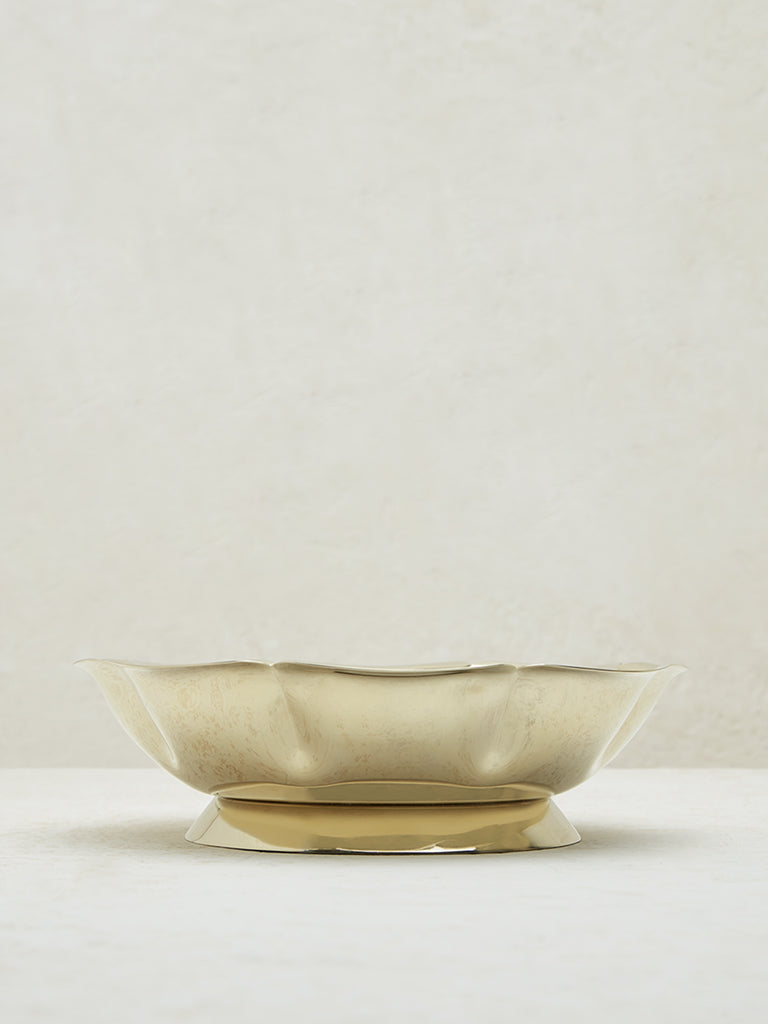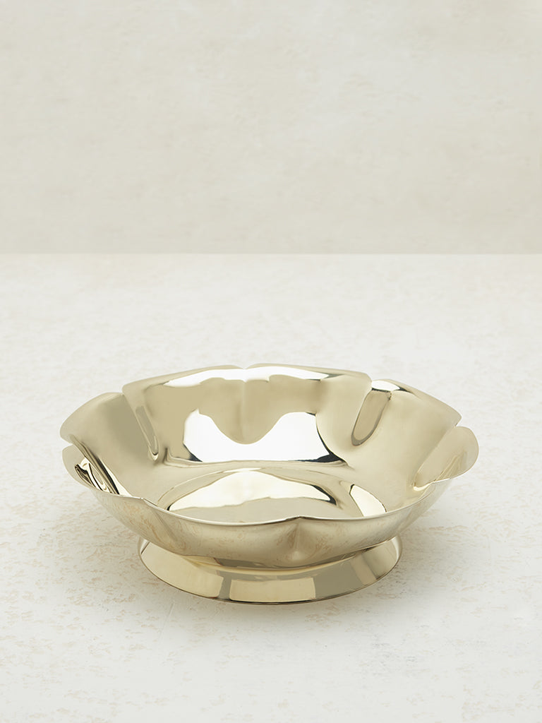 Raise your dining experience with the opulent charm of this large gold scallop design bowl from Westside Home. It features a stunning scalloped edge in a luxurious gold finish that catches the light and adds a touch of elegance to any table setting. Crafted from high-quality materials. the bowl is both durable and stylish. making it ideal for a variety of uses. from serving salads and pasta to presenting fruits or desserts. Its generous size ensures ample space for your culinary creations. while the rich gold tone adds a glamorous touch to your dining presentation.