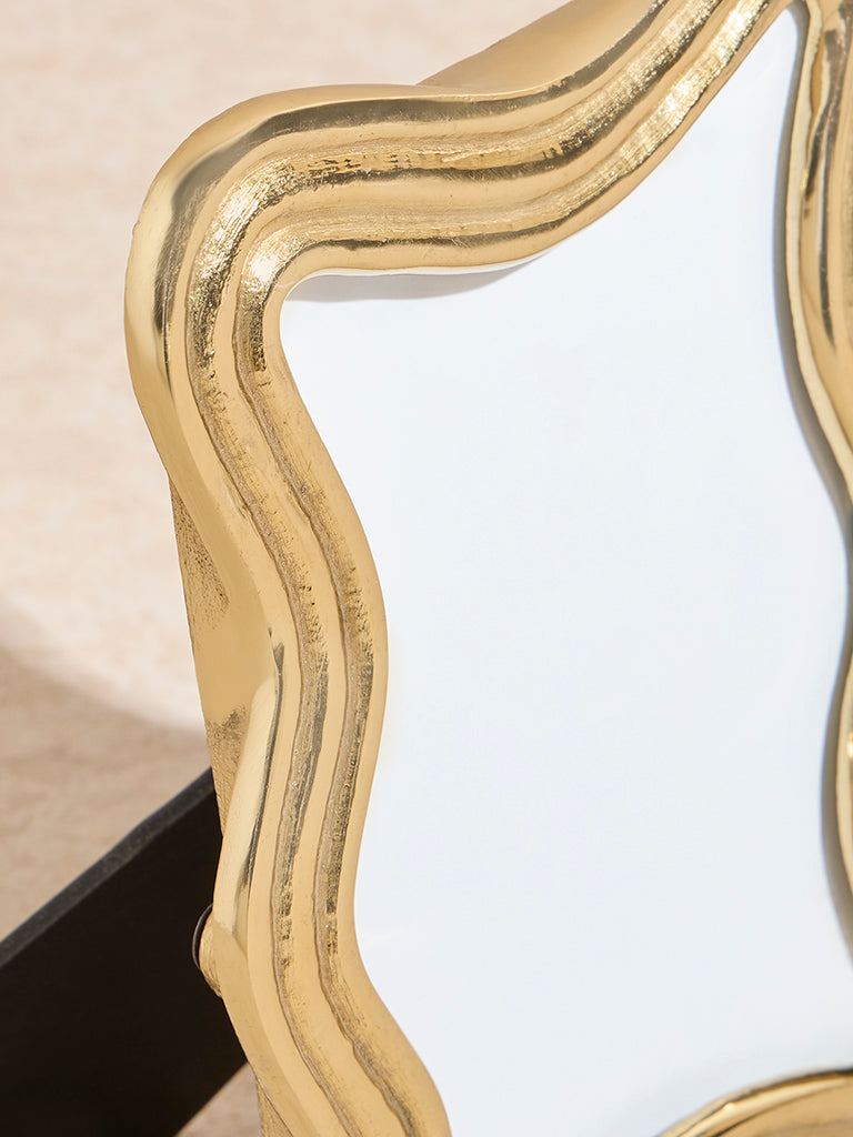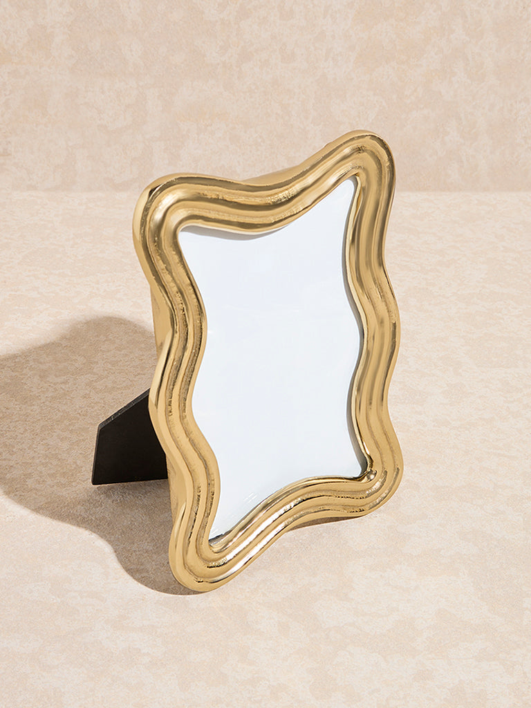 Turn your treasured memories into timeless d??cor with this gold photo frame from Westside Home. Designed with a scalloped border that echoes vintage elegance. this metallic frame adds a refined charm to your side table. console. or bedside. The warm golden finish pairs beautifully with both colour and black-and-white photographs. while the intricate detailing offers just the right touch of opulence. Whether it holds a cherished family photo or a scenic postcard. this frame turns every image into a showpiece.