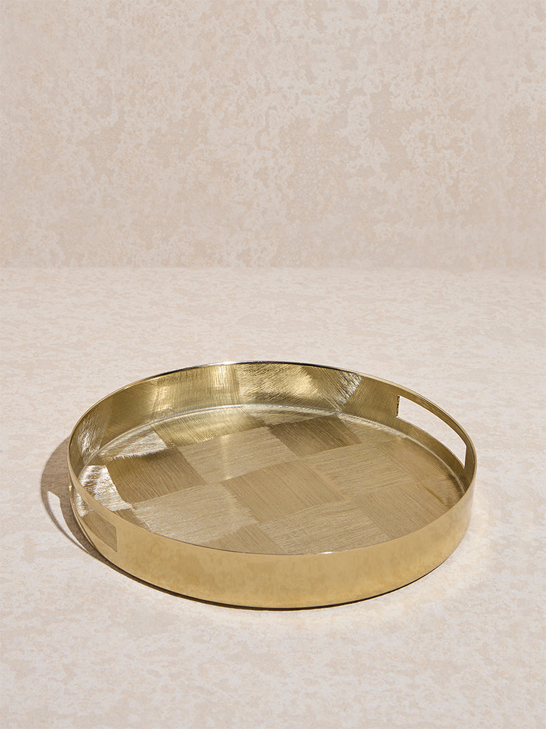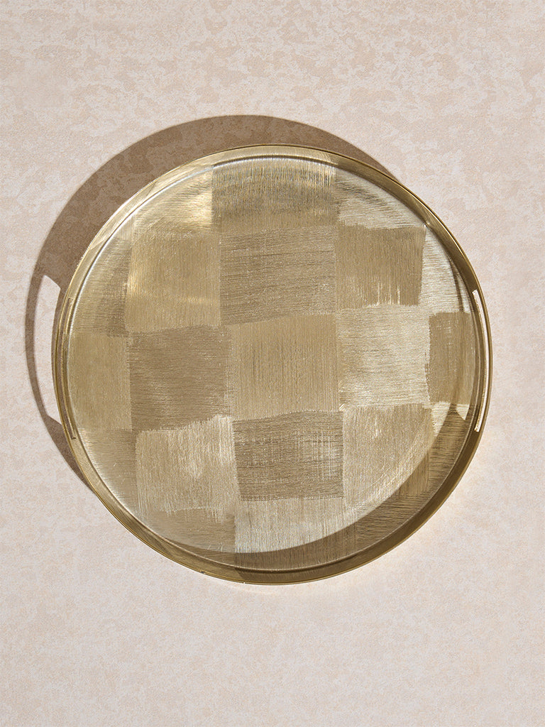 Serve in style with this serving tray from Westside Home. a glamorous addition to your hosting essentials. This tray boasts a shimmering gold finish with a delicate self-checkered pattern. exuding opulence and sophistication. Its spacious surface is perfect for presenting beverages. appetizers. or desserts. making every service feel like a lavish event. Whether you’re entertaining guests or enjoying a quiet evening at home. this tray combines luxury with practicality. adding a golden touch to your serving experience.