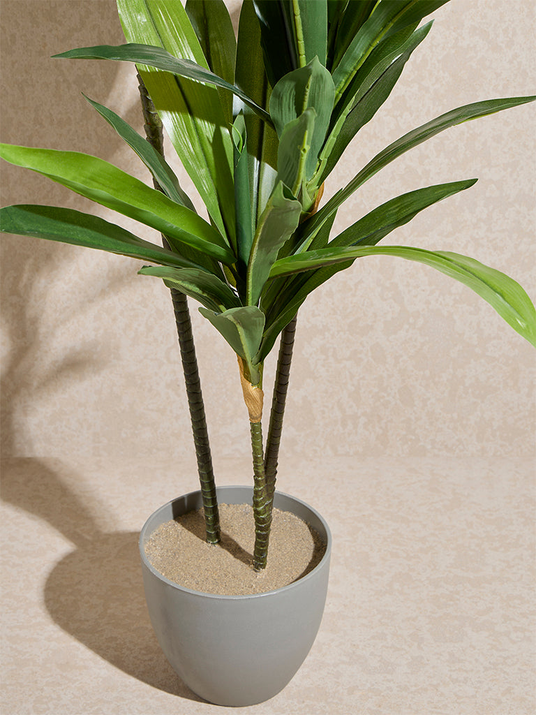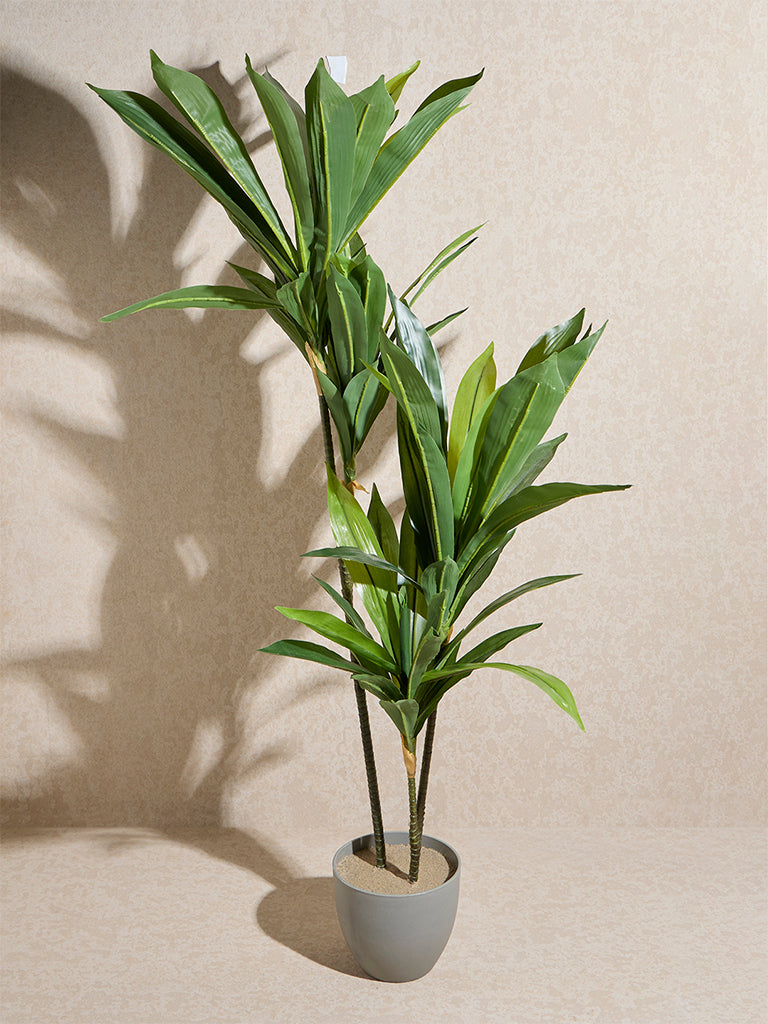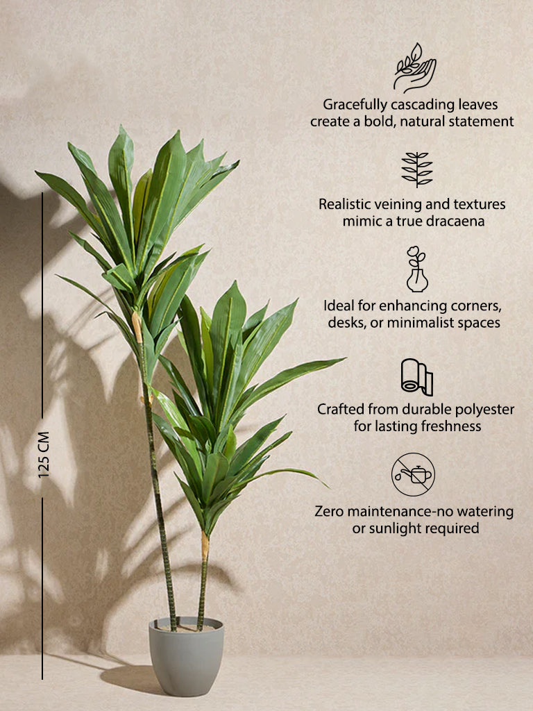 Westside Home presents this stunning green artificial dracaena plant. a striking accent that breathes life into any space without the need for upkeep. Lush. elongated leaves cascade in a graceful arrangement. showcasing a spectrum of rich green hues with delicate veining that mimics the beauty of a real dracaena. The plant stands tall in a sleek black pot. offering a modern contrast that enhances its visual appeal. Whether placed in a cozy corner. brightening up a work desk. or complementing minimalist interiors. this botanical piece adds effortless vibrancy and elegance to your surroundings.