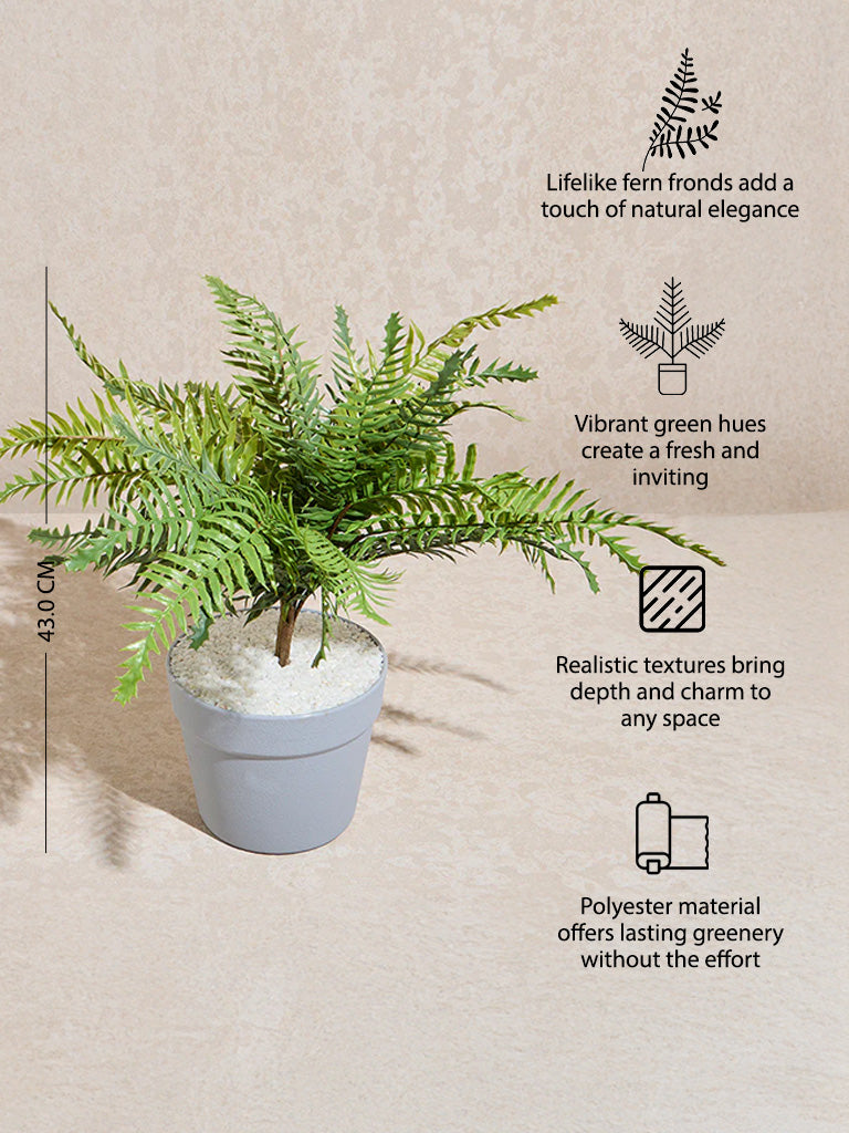 Bring the lush beauty of nature indoors with this green artificial fern plant from Westside Home. Designed with lifelike fronds that capture the delicate details of real ferns. this faux plant offers a verdant touch to your home without the upkeep. Perfect for those who love greenery but lack a green thumb. it can easily be placed in any room to create a fresh. inviting atmosphere. Whether nestled in a corner or used as a centrepiece. this artificial fern breathes life into your decor with its vibrant green hue and realistic design.