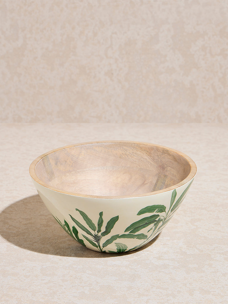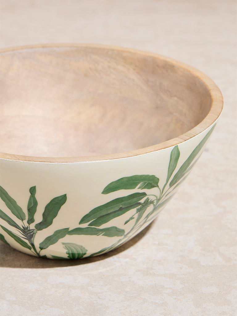 Westside Home Green Banana Leaf Patterned Wooden Bowl