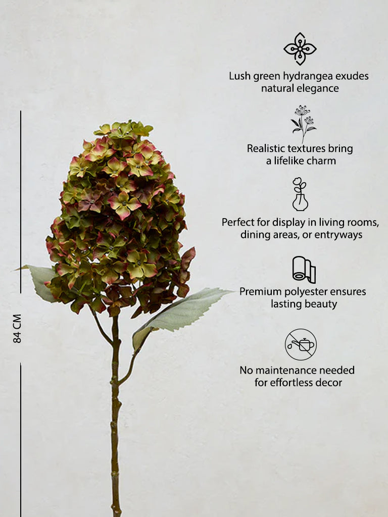 Bring a burst of elegance to your space with this green hydrangea artificial flower from Westside Home. With its lush. vibrant blooms. this stunning piece captures the timeless beauty of hydrangeas. adding a fresh and sophisticated touch to any decor. Perfect for creating a focal point in your living room. dining area. or entryway. this lifelike flower requires no maintenance. making it an ideal choice for those who love the beauty of nature without the fuss. Elevate your home with this striking artificial flower that effortlessly blends style and serenity.
